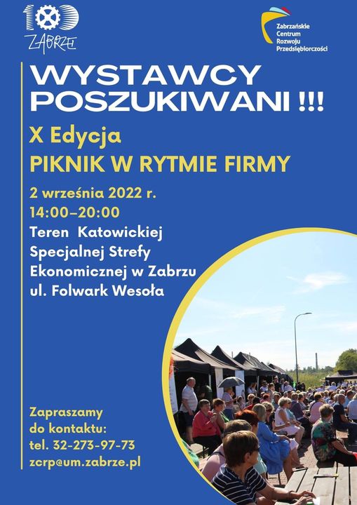 Zabrzańskie Centrum Rozwoju Przedsiębiorczości poszukuje chętnych przedsiębiorców z Zabrza i nie tylko do uczestnictwa w tegorocznej edycji Pikniku w Rytmie Firmy.
