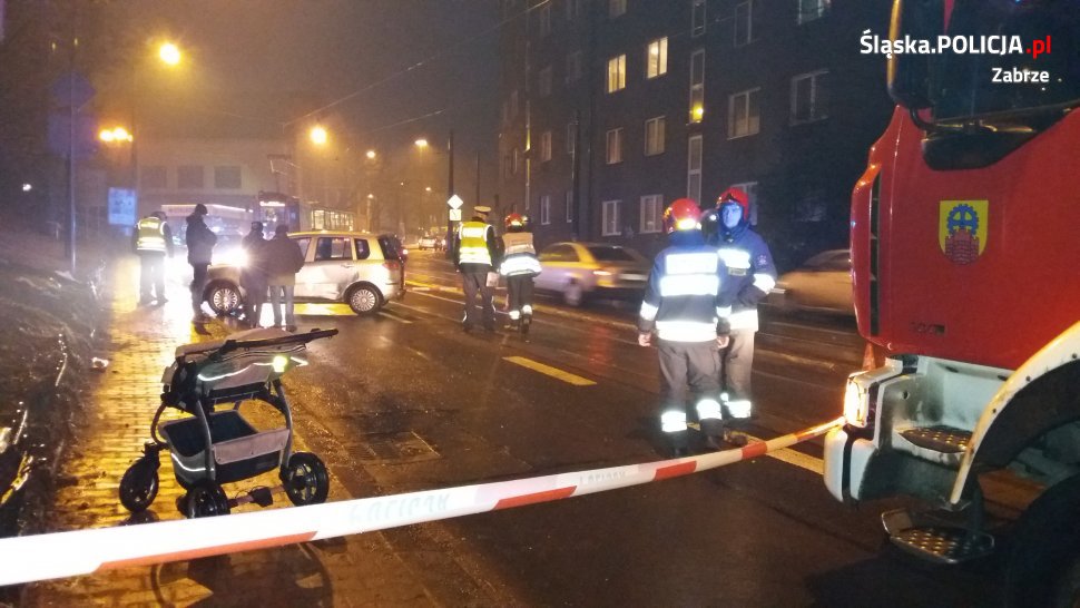 Do zdarzenia doszło kilka minut po 17.00 na ulicy Wolności w Zabrzu. Ze wstępnych ustaleń wynika, że kierująca mazdą jadąc lewym pasem w kierunku ulicy Stalmacha wykonała nieprawidłowo manewr wyprzedzania innych pojazdów i najechała na separator oddzielający pas jezdni. Następnie doprowadziła do zderzenia z jadącym w tym samym kierunku prawem pasem fordem. W wyniku uderzenia ford zjechał na chodnik i wjechał w grupę pieszych. Na miejsce została wezwana karetka pogotowia. Kobiety w wieku 27 i 34 lata, a także dzieci w wieku 2 i 4 lat przewieziono do szpitala. W wyniku zdarzenia dzieci nie odniosły obrażeń, ale po badaniach decyzją lekarza pozostały na obserwacji w szpitalu. Kobiety odniosły ogólne potłuczenia i obtarcia rąk i nóg. 24-letnia kierująca mazdą i 64-letni kierujący fordem byli trzeźwi. Na czas policyjnych czynności mundurowi z drogówki wytyczyli objazdy dla osób udających się w stronę centrum, natomiast ruch tramwajów był wstrzymany do 19.30. Czynności w sprawie trwają.