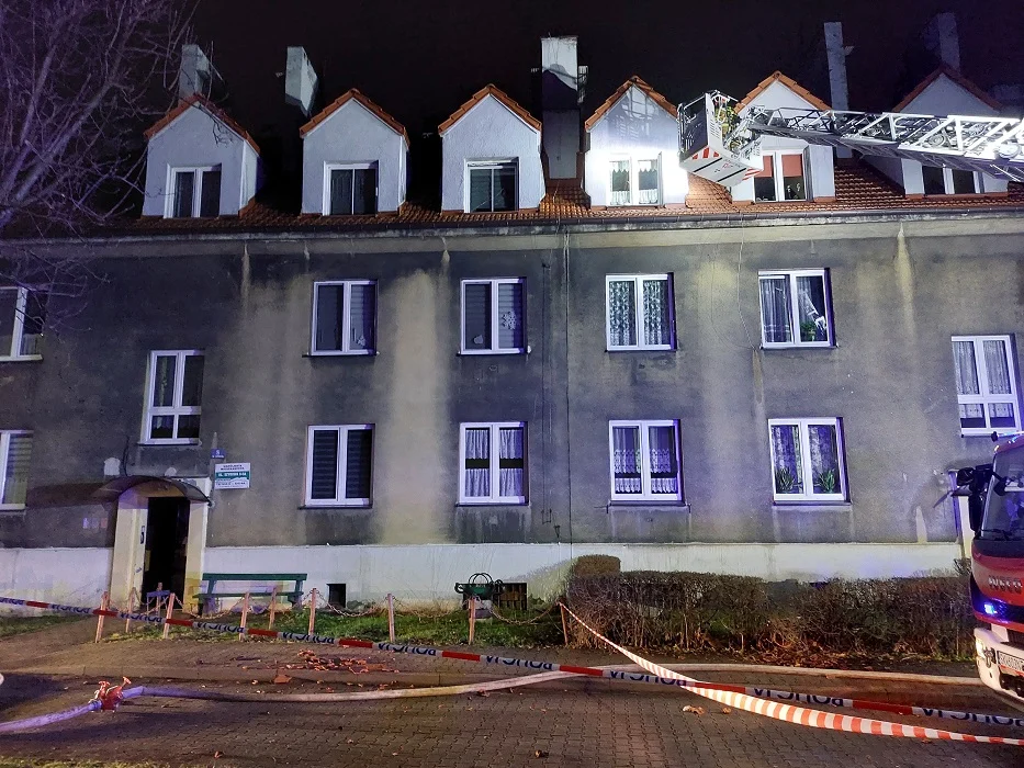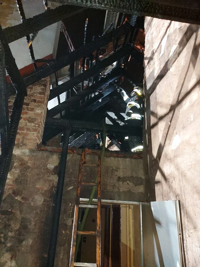 Pożar w Sylwestra: Spalił się dach gmachu przy ul. Szybowej. Obiekt wyłączono z użytkowani