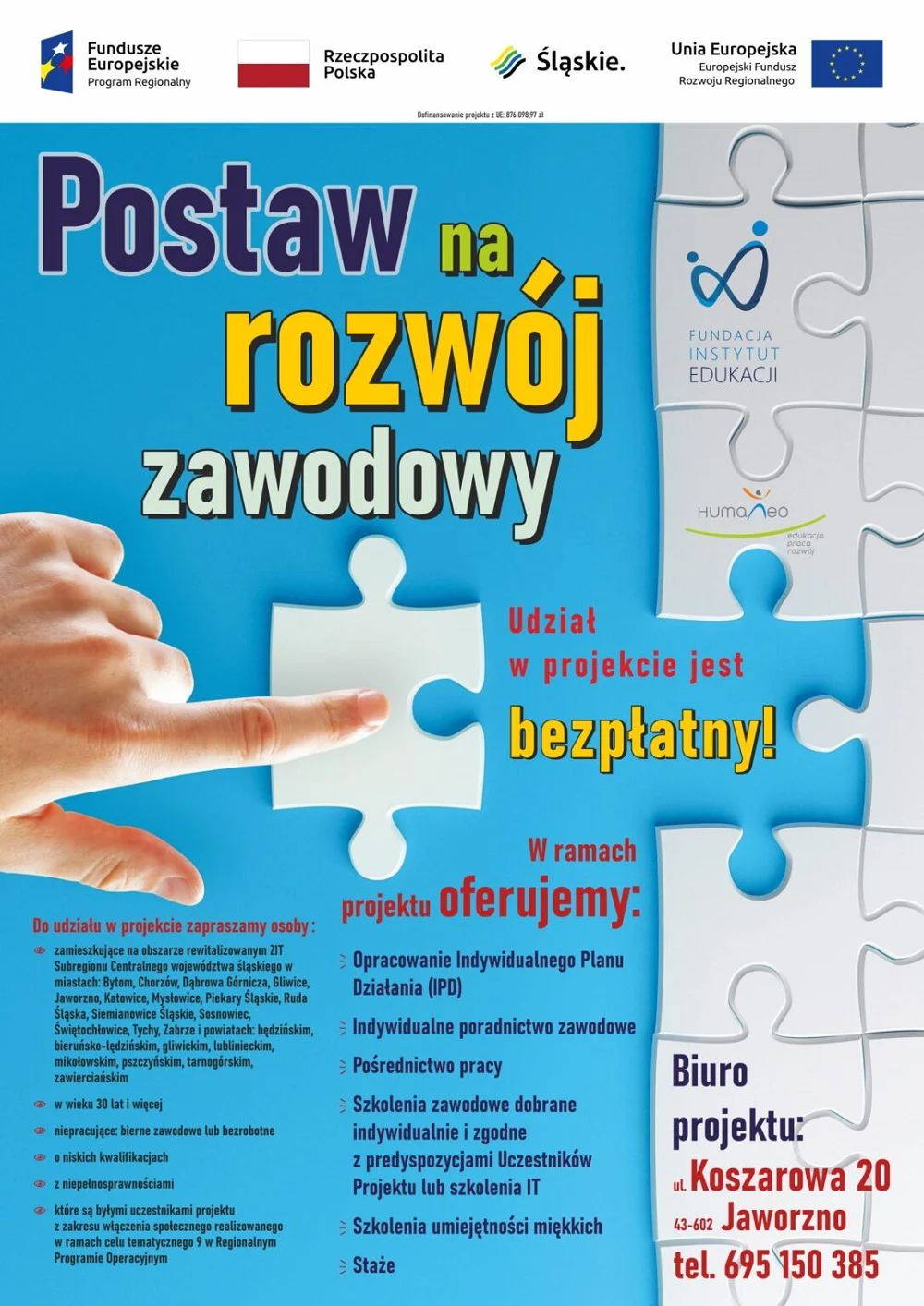 Fundacja Instytut Edukacji w partnerstwie z Humaneo zaprasza do udziału w projekcie “Postaw na rozwój zawodowy”.