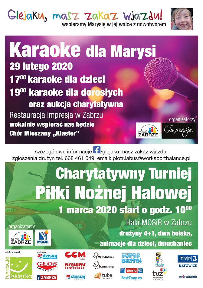 Stowarzyszenie Nowe Zabrze w ramach wsparcia leczenia Marysi organizuje w Zabrzu dwie imprezy charytatywne.