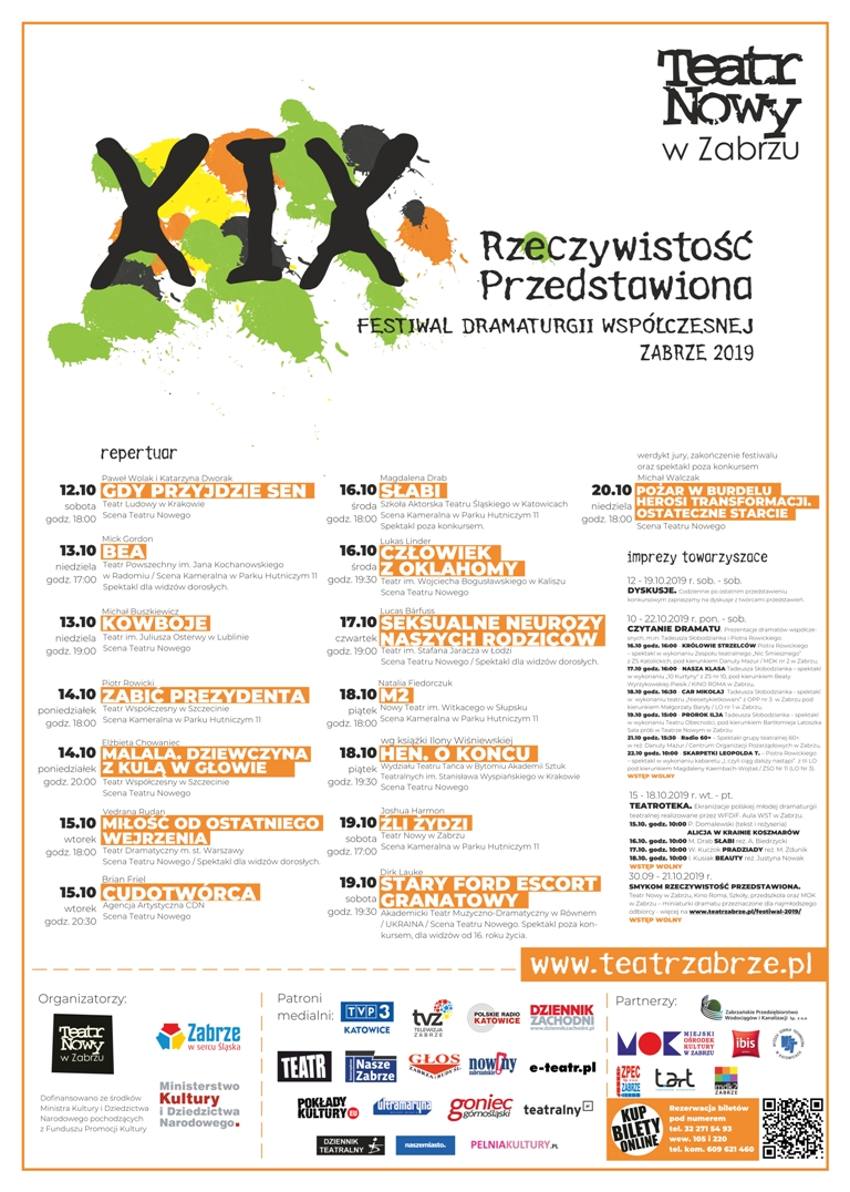 12 października w Zabrzu rozpocznie się XIX edycja Festiwalu Dramaturgii Współczesnej „Rzeczywistość przedstawiona”. Festiwal od dziewiętnastu lat organizuje Miasto Zabrze oraz Teatr Nowy.