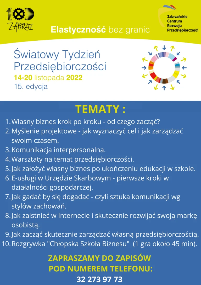 Prezydent Zabrza Małgorzata Mańka-Szulik zaprasza do udziału w XV edycji Światowego Tygodnia Przedsiębiorczości organizowanego przez Zabrzańskie Centrum Rozwoju Przedsiębiorczości.