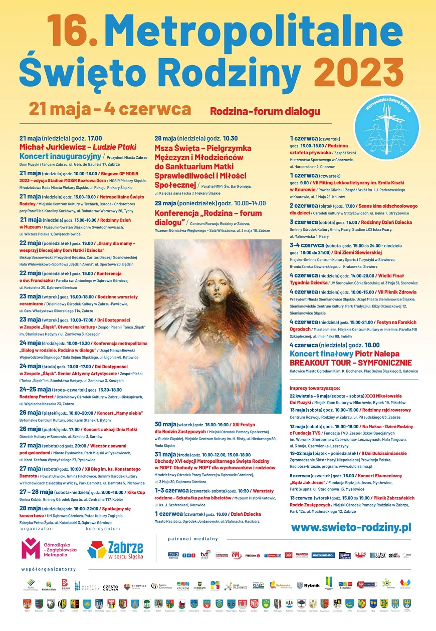 Szczegółowe informacje dotyczące 16. edycji Metropolitalnego Święta Rodziny znajdują się na stronie internetowej www.swieto-rodziny.pl, a także na plakacie poniżej: