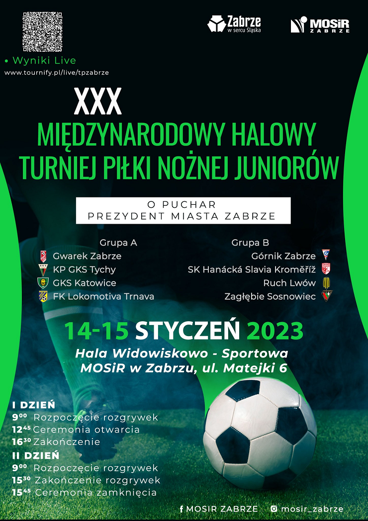 W najbliższy weekend w naszym mieście rozpocznie się XXX Międzynarodowy Halowy Turniej Piłki Nożnej o Puchar Prezydenta Miasta Zabrze. Dwudniowa impreza odbędzie się w hali Widowiskowo Sportowej MOSIR, przy ul. Matejki 6 w Zabrzu.