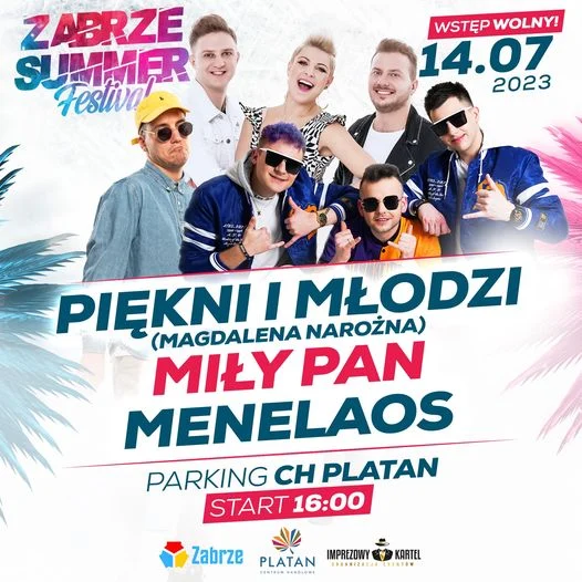 Ogłoszono już artystów, którzy wystąpią w centrum Zabrza podczas czterech dni Zabrze Summer Festivalu. W piątek 14 lipca na scenie zobaczymy gwiazdy disco-polo. Wystąpią Piękni i Młodzi z Magdaleną Narożną, Miły Pan oraz zespół Menelaos.