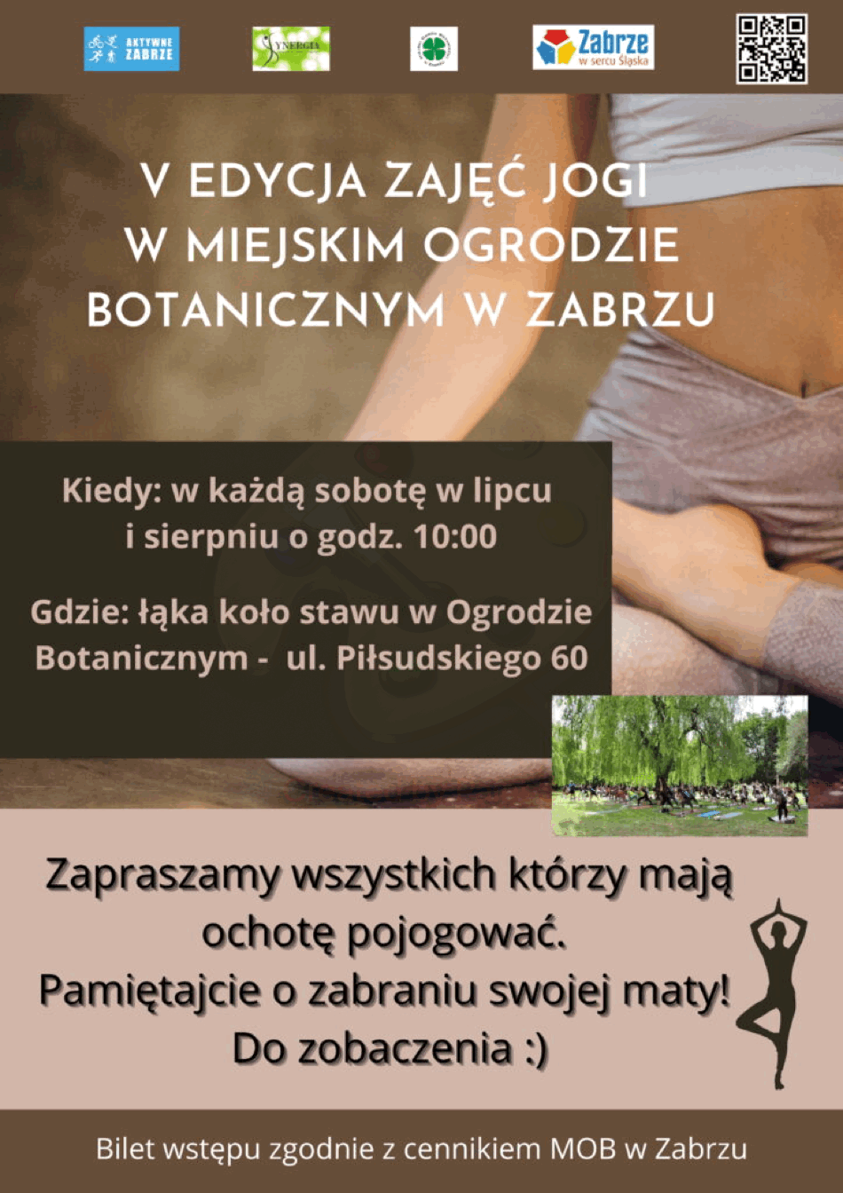 W pierwszą sobotę lipca joga ponownie zagości na dużej łące pod wierzbą naprzeciw stawu. Cotygodniowe zajęcia odbywać się będą w każdą sobotę, aż do 28 sierpnia 2021 o godzinie 10.00. Potrwają około 1,5 godziny. Odbędą się na łące koło stawu Ogrodzie Botanicznym. Wstęp na jogę jest darmowy, bez ograniczeń miejsc, natomiast wstęp do ogrodu płatny 2 zł. W razie niepogody zajęcia zostaną odwołane.