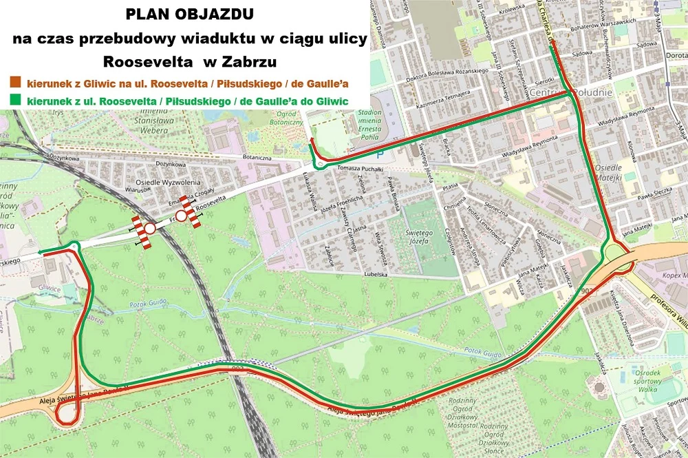 W zeszły czwartek (21 października) Miejski Zarząd Dróg w Zabrzu poinformował o planowanym zamknięciu odcinka ulicy Roosevelta w Zabrzu na granicy z Gliwicami od piątku 5 listopada. Zmiana organizacji ruchu drogowego ma związek z remontem wiaduktu nad torami kolejowymi w ciągu ulicy Roosevelta. Wprowadzone zostaną objazdy.