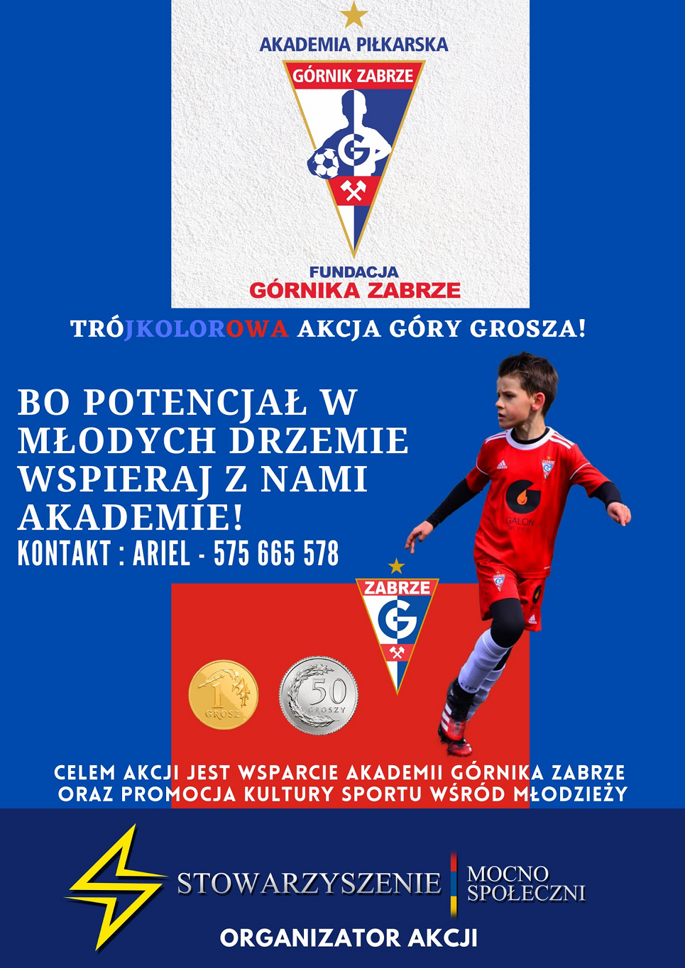 Stowarzyszenie MocnoSpołeczni ruszyło z kolejną akcją charytatywną. Tym razem jest to góra grosza na rzecz wsparcia wsparcie młodych piłkarzy z Akademii Piłkarskiej Górnika Zabrze. Sprawdź, jak możesz pomóc!