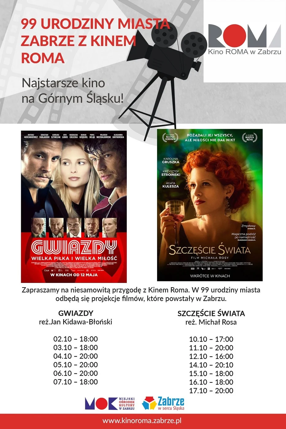 W październiku w Kinie Roma będzie można zobaczyć dwa filmy, które powstały między innymi w Zabrzu. Seanse odbędą się w ramach świętowania przypadającej na ten rok 99 rocznicy Miasta Zabrze.