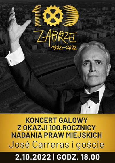 Wyjątkowe urodziny miasta uświetni koncert światowej sławy tenora José Carrerasa, który 2 października o godz. 18.00 wystąpi na scenie Domu Muzyki i Tańca. Podczas koncertu galowego z okazji nadania Zabrzu praw miejskich artyście towarzyszyć będą znakomici wykonawcy: Katarzyna Stankiewicz, Katarzyna Moś, Urana oraz zabrzanin Staś Napierała. Na scenie pojawi się także Orkiestra Filharmonii Zabrzańskiej.