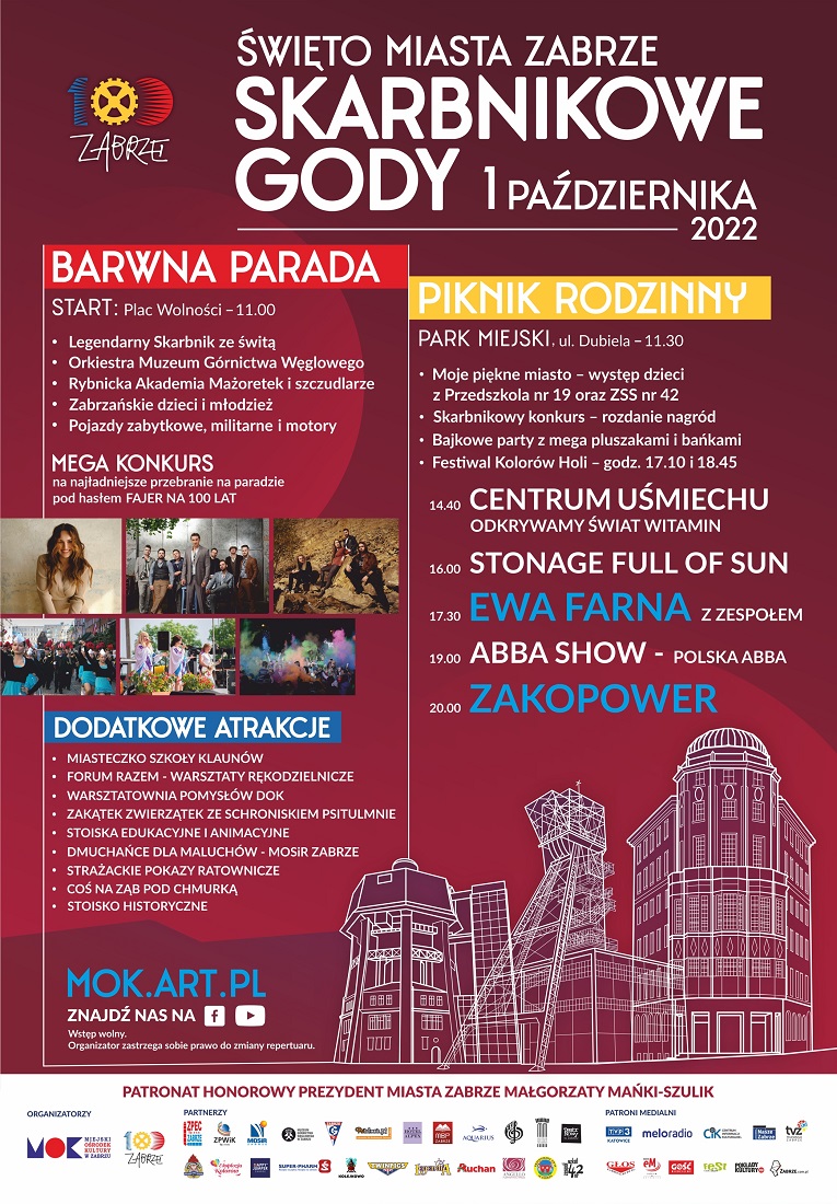 Jak co roku, w okresie rozpoczynającym jesień czekają nas znane przez wszystkich zabrzan Skarbnikowe Gody, czyli kolejne Urodziny Miasta Zabrze. W tym roku obchodzimy ważną, bo już setną, rocznice nadania Zabrzu praw miejskich. Z tej okazji przygotowano równie wyjątkowe wydarzenia.