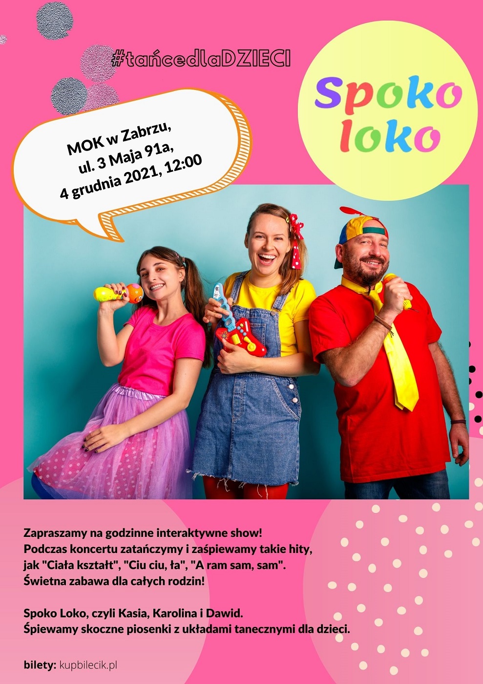 Spoko Loko, czyli Kasia, Karolina i Dawid to zespół z Wrocławia. Rok temu wydał płytę “Tańce Połamańce”, a na swoim YouTubie ma kilka milionów wyświetleń.