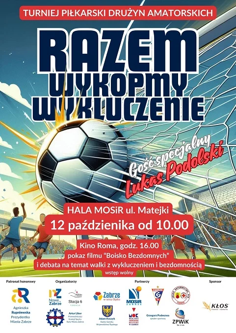 Druga część wydarzenia odbędzie się w Kinie Roma. O godz. 16:00 zapraszamy na debatę „Razem wykopmy wykluczenie – profilaktyka przez sport”, podczas której zostanie poruszony temat, jak sport może przeciwdziałać wykluczeniu społecznemu. Następnie, o godz. 17:00, odbędzie się pokaz filmu „Boisko Bezdomnych” – wzruszającej opowieści o sile wspólnoty i walce z przeciwnościami losu.