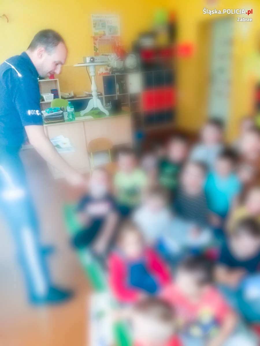 Profilaktyk z zabrzańskiej komendy odwiedził Przedszkole nr 3, gdzie przeprowadził z dziećmi pogadankę na temat bezpieczeństwa. W trakcie zajęć dzieci mogły zapoznać się z pracą mundurowych i zadawać pytania na, które policjanci chętnie odpowiadali.