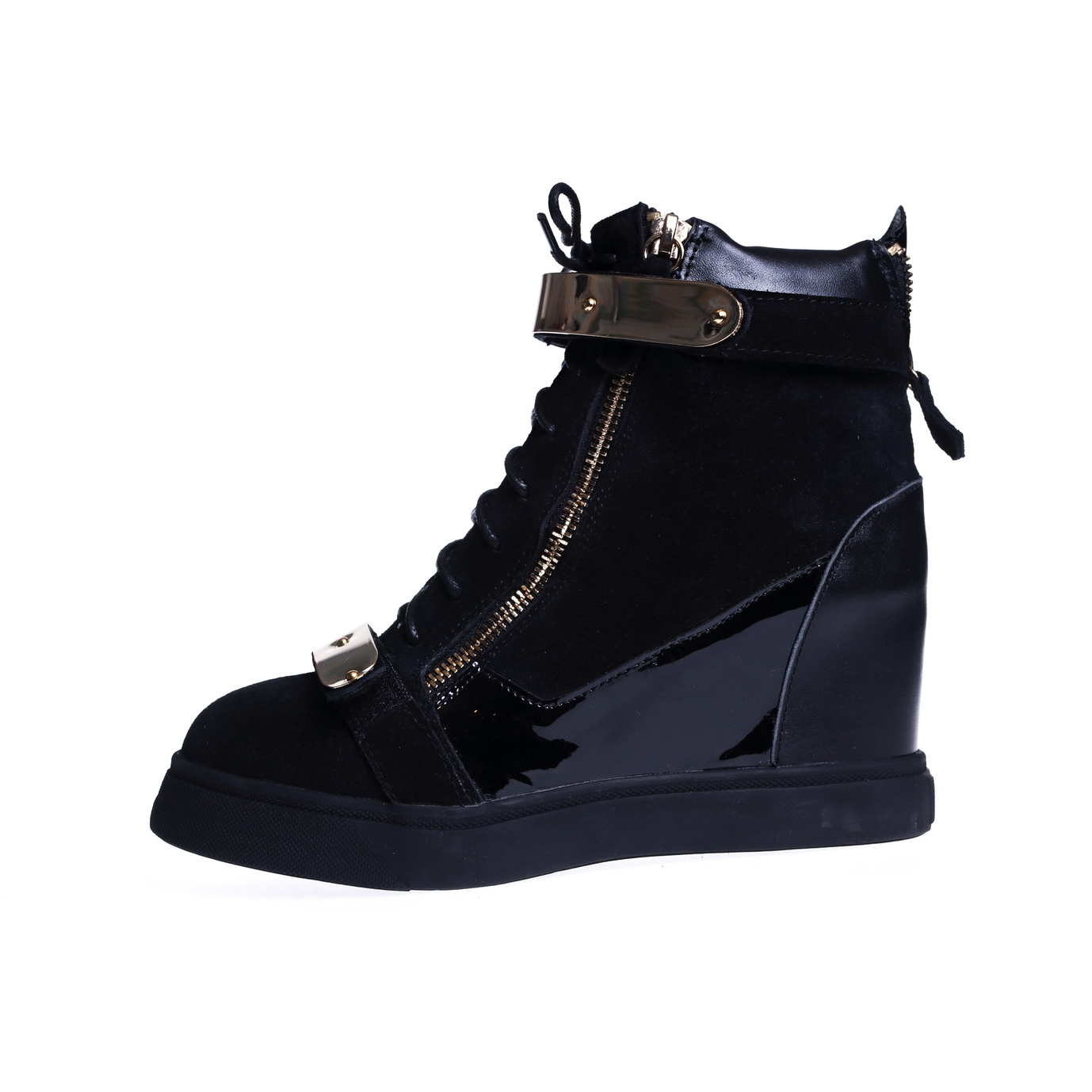 Szczególnie modne i cieszące się od kilku lat niesłabnąca popularnością są buty w formie trampek na wysokim obcasie tworzącym z podeszwą jedną całość. Tego rodzaju buty doskonale prezentują się na nodze, podnosząc stopę i tym samym wysmuklając sylwetkę, dlatego mogą być noszone zarówno do spodni, szortów, jak również spódnic typu mini.