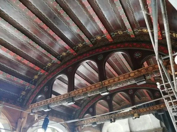 Prace konserwatorskie polegają na renowacji elementów drewnianych w sali witrażowej, rekonstrukcji zabytkowych polichromii oraz wykonaniu posadzek i schodów.