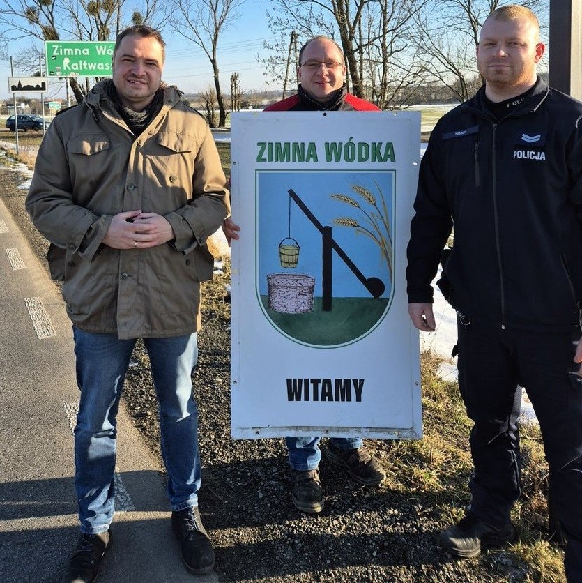 Do zdarzenia doszło na terenie województwa opolskiego, w miejscowości Zimna Wódka (powiat strzelecki). Trzej mieszkańcy Zabrza, będąc pod wpływem alkoholu, uznali, że charakterystyczna nazwa miejscowości będzie oryginalnym akcentem ich wieczoru. Ich „żart” nie trwał jednak długo. Sprawą zajął się dzielnicowy z Ujazdu, st. sierż. Krzysztof Kuczmera, który szybko ustalił osoby odpowiedzialne za przestępstwo.