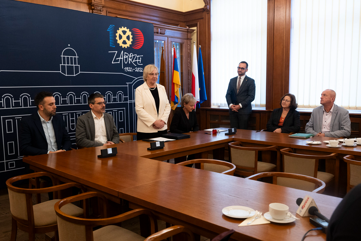 Dzisiaj w zabrzańskim Ratuszu podpisana została umowa na remont drogi wraz z odwodnieniem i modernizacją chodników w ciągu ulicy 11 Listopada. Podpisy na umowie w obecności prezydent Zabrza Małgorzaty Mańki-Szulik złożyli: dyrektor Miejskiego Zarządu Dróg Danuta Bochyńska-Podloch oraz wiceprezes firmy Drogopol sp. z o.o. Michał Staszewski.