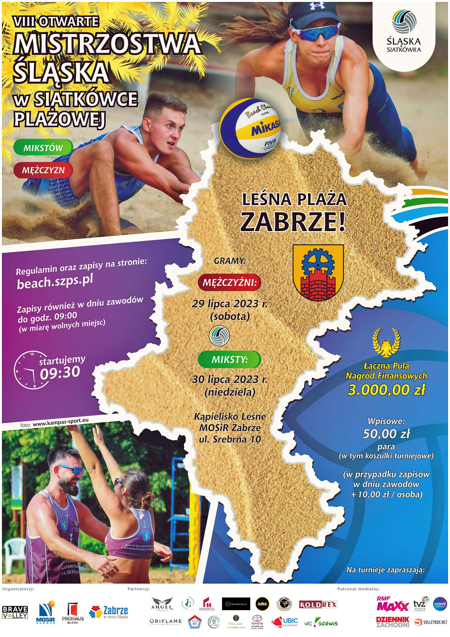 Już w najbliższy weekend, 29-30 lipca, Miejski Ośrodek Sportu i Rekreacji w Zabrzu organizuje VIII Otwarte Mistrzostwa Śląska w Siatkówce Plażowej. Zawody odbywać się będą na terenie Kąpieliska Leśnego w Zabrzu-Maciejowie (ul. Srebrna 10). Po raz pierwszy turniej znalazł się w oficjalnym kalendarzu Śląskiego Związku Piłki Siatkowej. Zawody startują od godziny 9.30.
