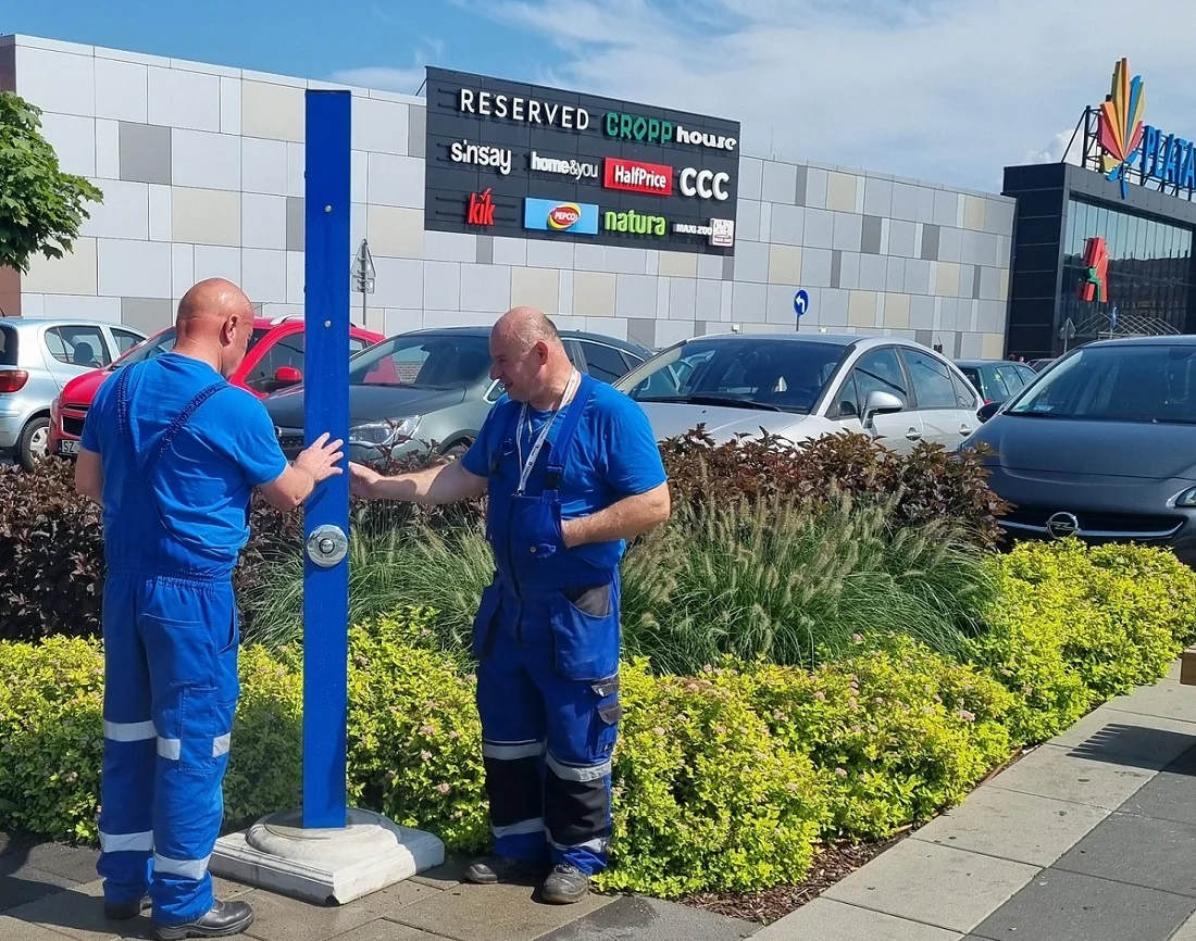 Dziś (wtorek 16 sierpnia) przy Centrum Handlowym Platan Zabrzańskie wodociągi postawiły pierwszy w Zabrzu słupek zraszający. Docelowo takie słupki mają zastąpić w naszym mieście wszystkim znane bramki.