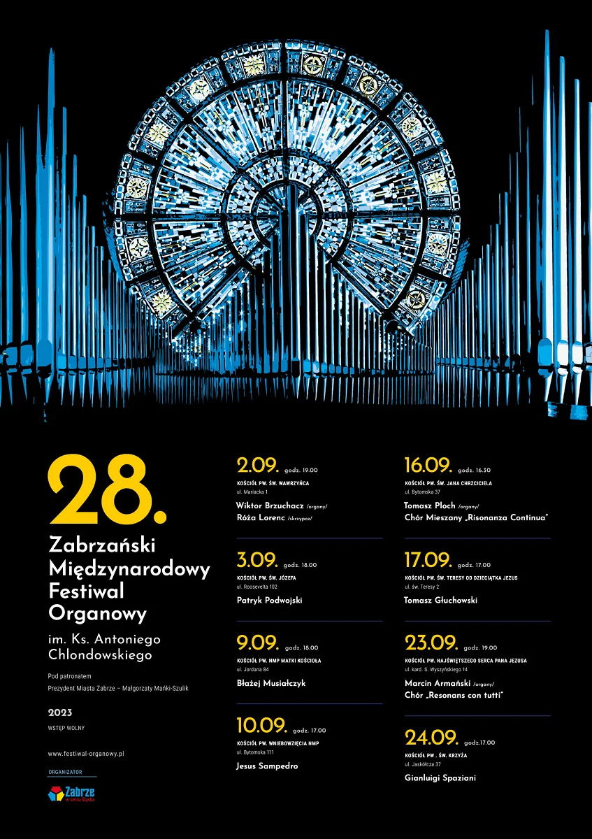 Jeszcze przez dwa kolejne weekendy zabrzańskie kościoły wypełnią dźwięki królewskiego instrumentu, a koncerty zagrają wirtuozi muzyki organowej z Polski i Włoch. Szczegółowy program Festiwalu można znaleźć na plakacie zamieszczonym poniżej oraz stronie Festiwalu: www.festiwal-organowy.pl.