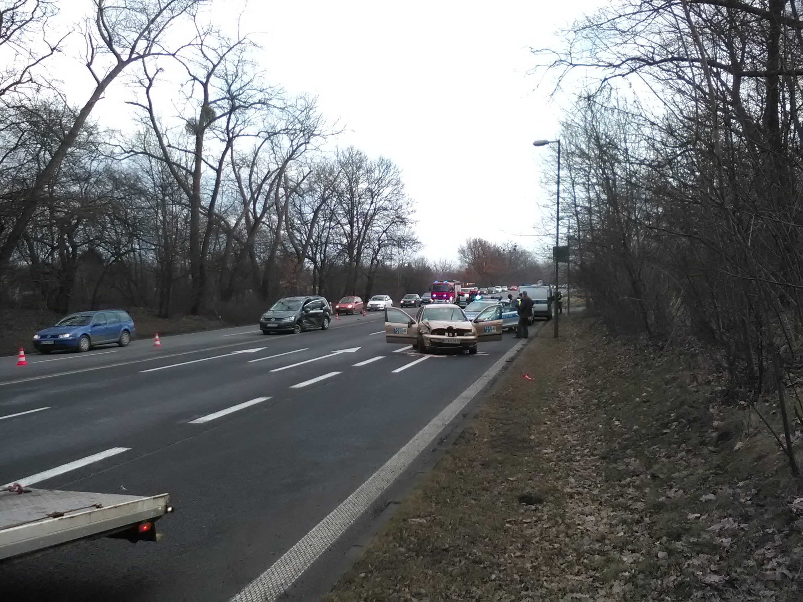Do zdarzenia doszło około 8.30 na 25 km drogi krajowej 88. Ze wstępnych ustaleń wynika, że 65-letni kierujący volkswagenem, jadąc w stronę Gliwic, chciał zjechać w zjazd w ulicę Mikulczycką, który znajdował się po drugiej stronie czteropasmowej drogi. W tym celu w miejscu niedozwolonym, z prawego pasa zaczął wykonywać manewr zawracania i doprowadził do zderzenia z prawidłowo jadącym w tym samym kierunku lewym pasem seatem. Pasażerka seata z podejrzeniem urazu kręgosłupa została przewieziona do szpitala.