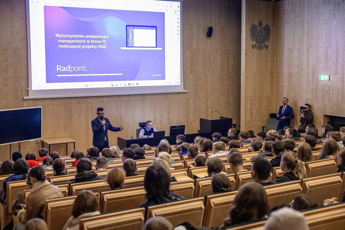 Podczas Dnia Otwartego Politechniki Śląskiej młodzież mogła posłuchać wykładu Radosława Lubery pt. „Wykorzystanie umiejętności managerskich w firmie IT”.