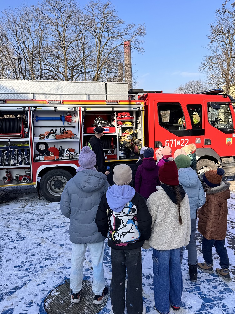 Dzieci i młodzież miały także okazję odwiedzić jednostkę straży pożarnej, gdzie mogli zapoznać się z pracą strażaków i sprzętem ratowniczym. Spotkania te cieszyły się dużym zainteresowaniem – uczniowie aktywnie uczestniczyli w rozmowach i zadawali pytania dotyczące bezpiecznego zachowania podczas ferii.