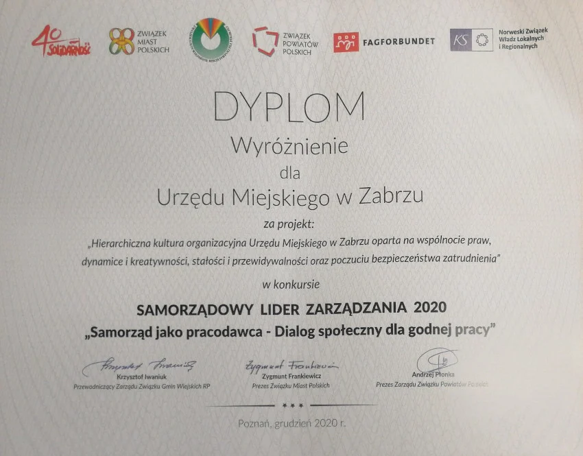 Zabrze finalistą konkursu „Samorządowy Lider Zarządzania 2020 – Samorząd jako pracodawca”