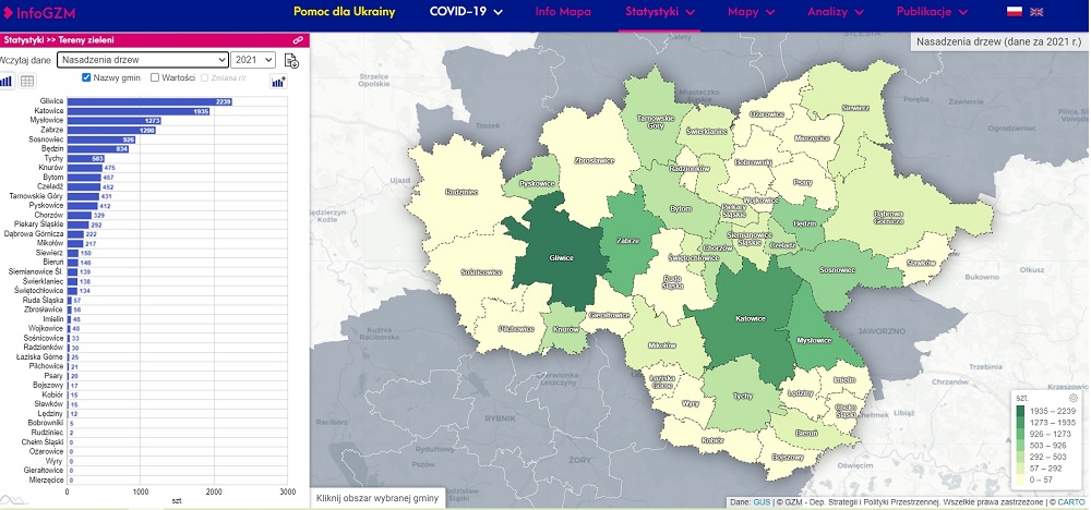 Zgodnie z danymi GZM najwięcej nasadzeń odnotowano w Gliwicach, ponieważ aż 2239, w Katowicach było ich 1935, w Mysłowicach – 1275, a wZabrzu 1200. Dane dotyczą roku 2021.