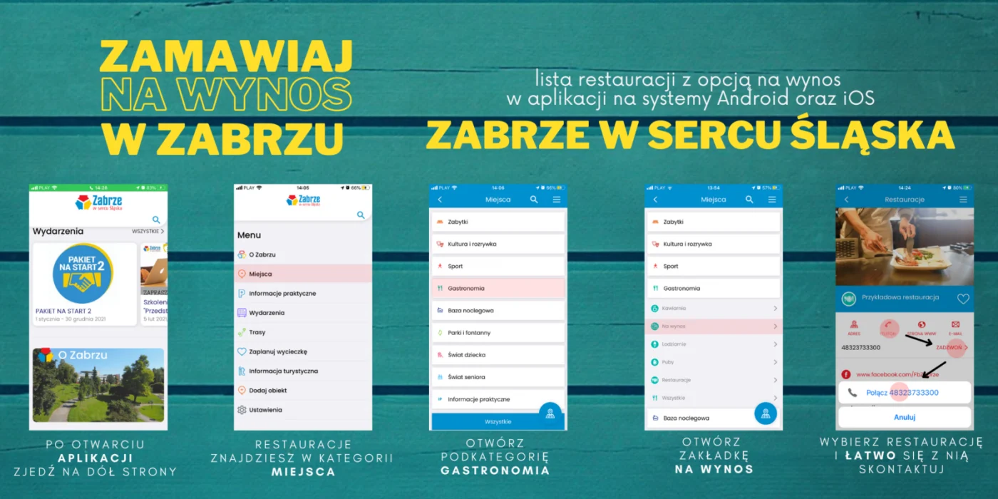 Teraz można również skorzystać z nowej funkcjonalności, która udostępniona została w aplikacji “Zabrze w sercu Śląska”. Dotarcie do restauracji, które oferują dania na wynos jest tutaj wyjątkowo proste – wystarczy wybrać Miejsca/ Gastronomia/ Na wynos i już widzimy właściwą listę. Teraz pozostaje już tylko podjęcie decyzji, gdzie zamawiamy posiłek i możemy zadzwonić i złożyć zamówienie.