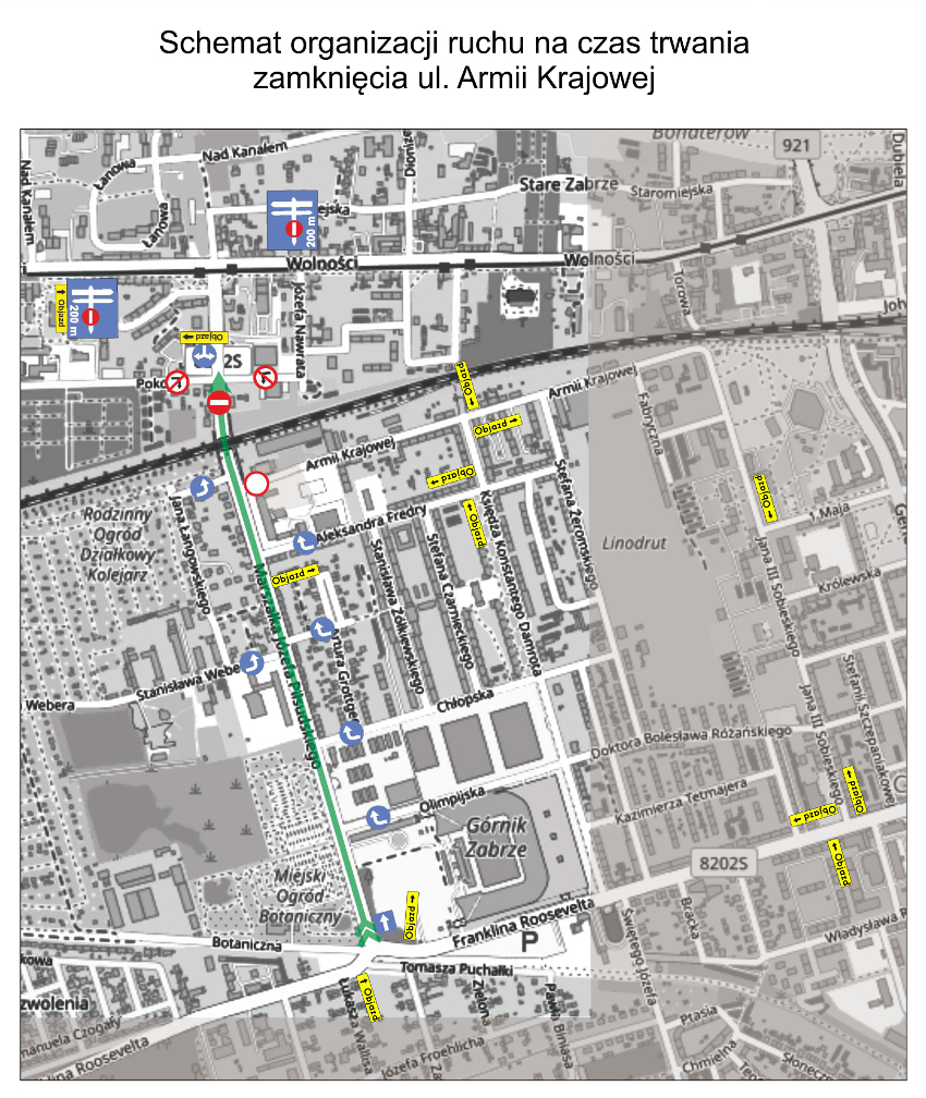 W związku z trwającą przebudową ulicy Piłsudskiego i koniecznością wykonania przebudowy infrastruktury uzbrojenia podziemnego od 9 maja do 31 maja 2019 roku zostanie zamknięty wlot ulicy Armii Krajowej i wprowadzona tymczasowa organizacja ruchu od skrzyżowania z ulicą Roosevelta do wiaduktu kolejowego.