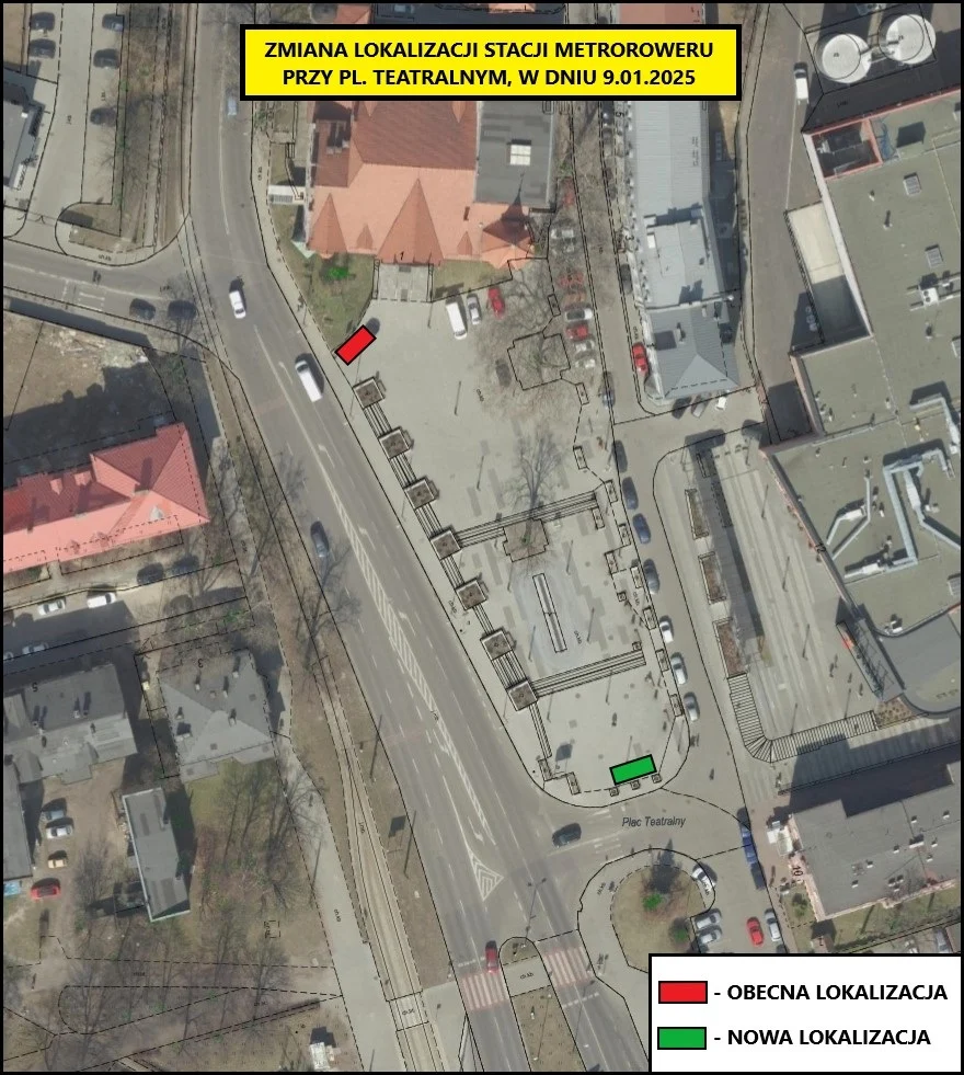 Już 9 stycznia 2025 roku nastąpi zmiana lokalizacji stacji Metroroweru, dotychczas zlokalizowanej przed wejściem do Teatru Nowego. Stacja zostanie przeniesiona w dolną część placu Teatralnego, poniżej fontanny.