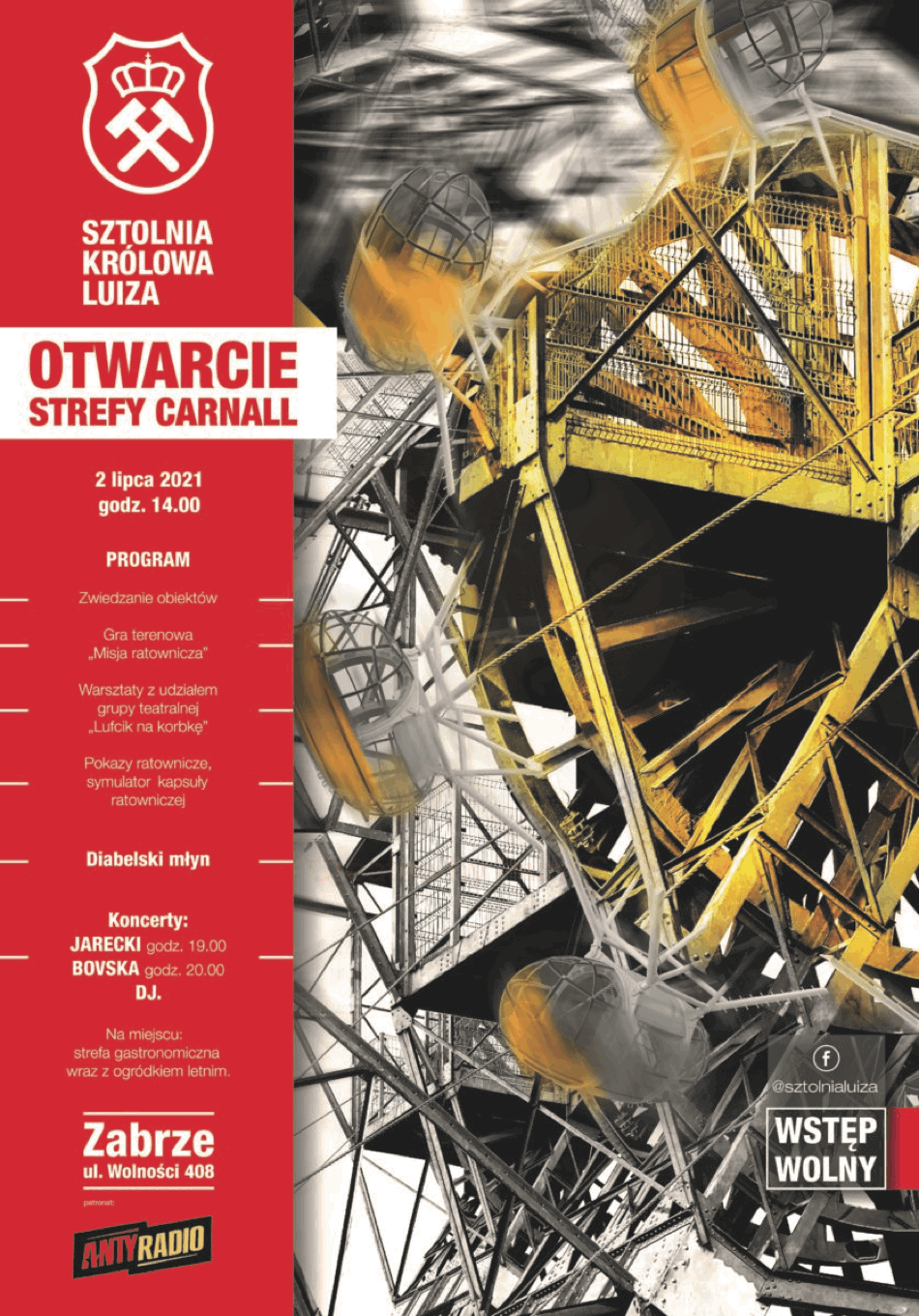 Zbliża się wielkie święto turystyki poprzemysłowej. Otwarcie wyjątkowej strefy Carnall – naziemnej części Sztolni Królowa Luiza w Zabrzu, na które zapraszamy już dziś.