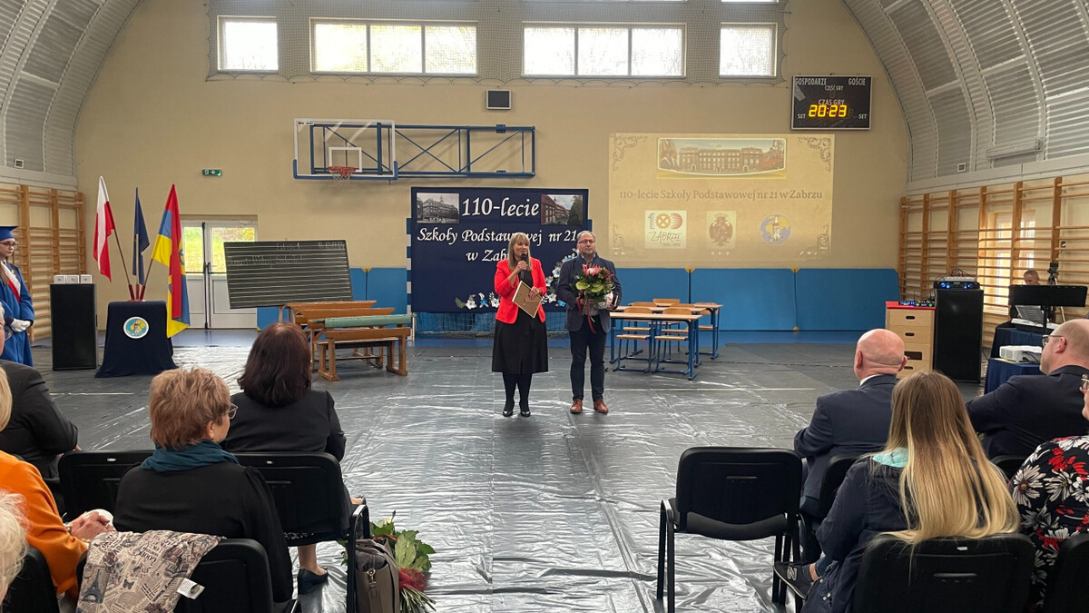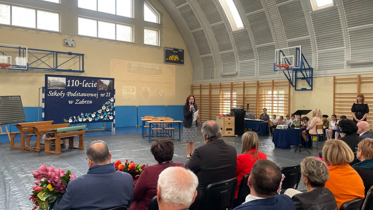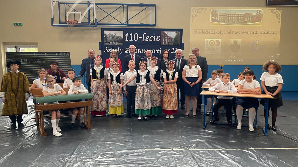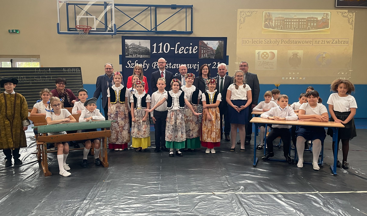 W miniony piątek jubileusz 110-lecia obchodziła Szkoła Podstawowa nr 21, która mieści się w najstarszej dzielnicy naszego miasta – Biskupicach. Wspólnie ze społecznością szkolną świętowali m.in.: zastępca prezydenta Zabrza Katarzyna Dzióba, przewodnicząca Rady Miasta Zabrze Łucja Chrzęstek-Bar z radnym Dariuszem Walerjańskim, posłanka Barbara Dziuk, naczelnik Wydziału Oświaty Urzędu Miejskiego w Zabrzu Ewa Wolnica, zastępca dyrektora gliwickiej Delegatury Kuratorium Oświaty w Katowicach Wojciech Zając, a także gość honorowy hrabia Mikołaj von Ballestrem, potomek rodziny, która przyczyniła się do rozwoju szkolnictwa w Zabrzu-Biskupicach.