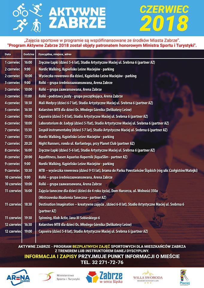 Szczegółowy plan poniżej oraz na www.aktywnezabrze.pl