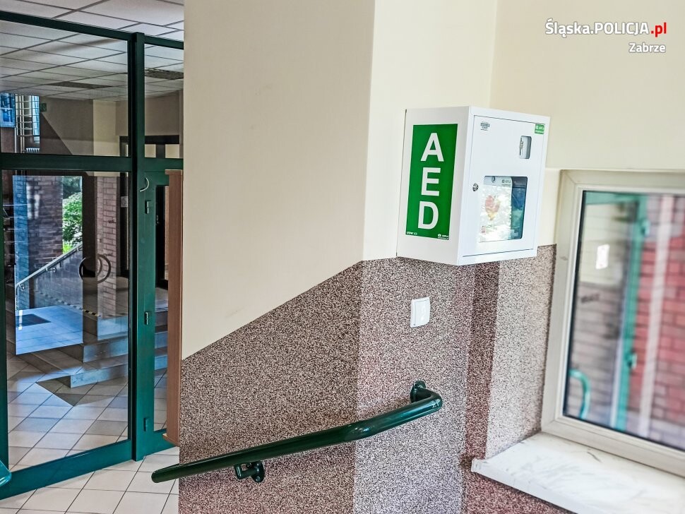 Sprzęt ratujący życie znalazł się na holu zabrzańskiej komendy w miejscu ogólnodostępnym. Automatyczny Defibrylator Zewnętrzny (AED) ma służyć zarówno mieszkańcom, petentom jak i policjantom i pracownikom jednostki. Dostęp do urządzenia jest łatwy i dostępny przez całą dobę.
