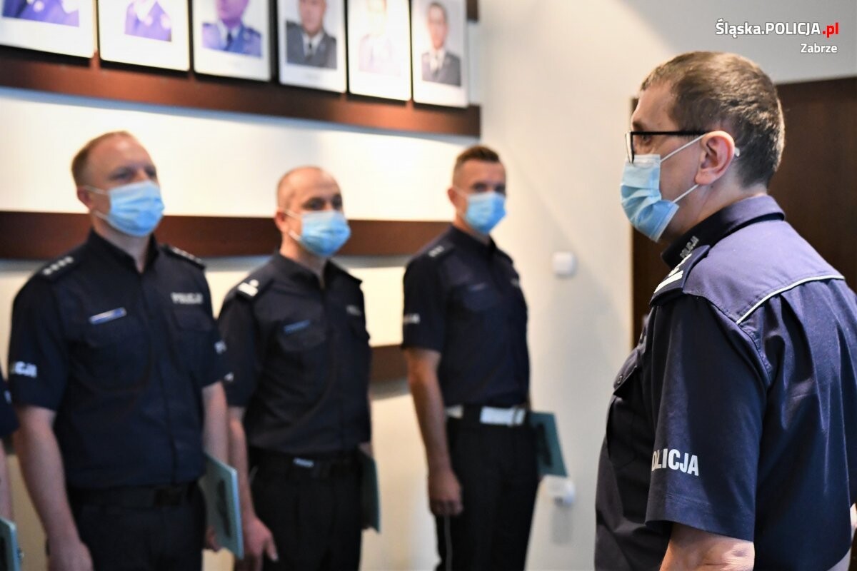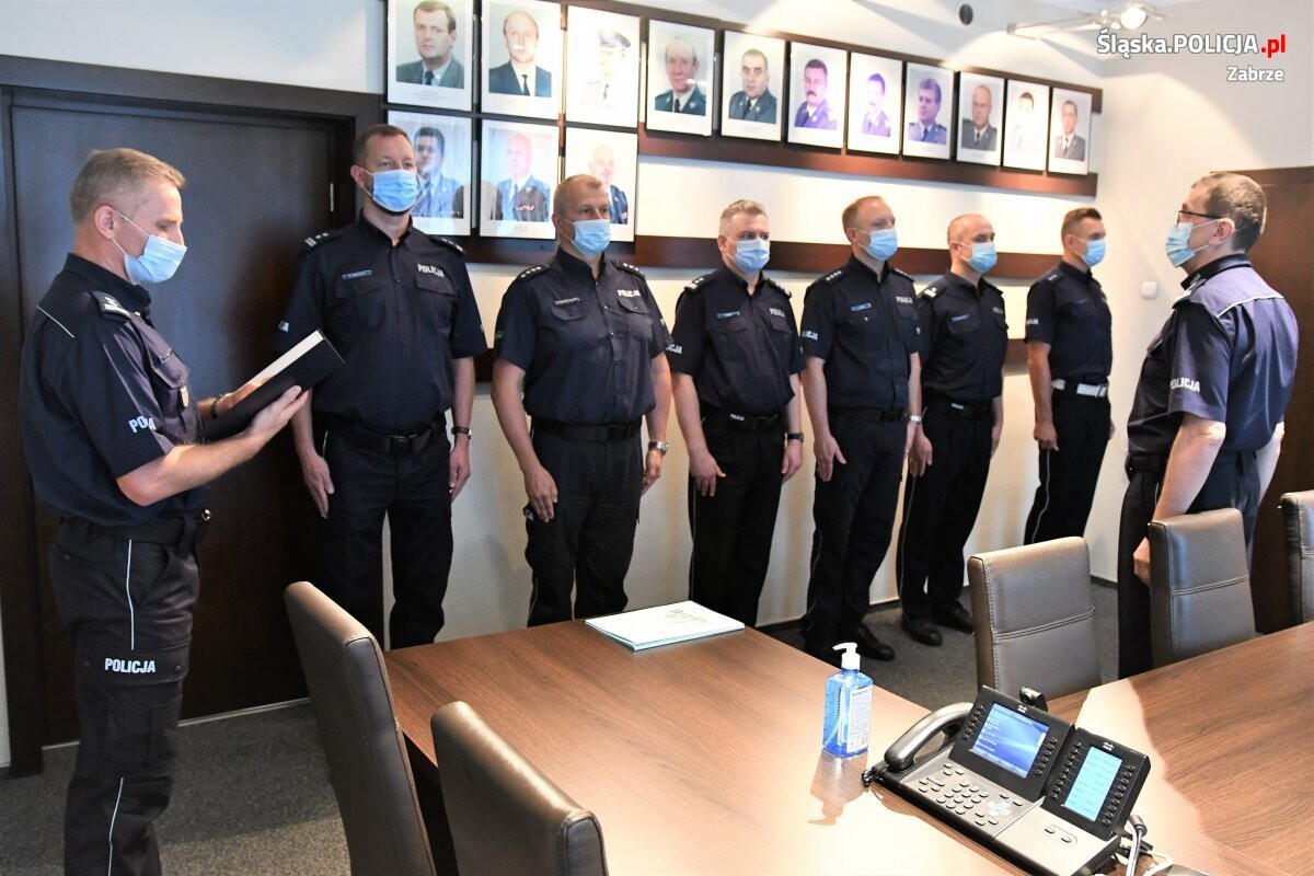 Rozkazy odczytał Naczelnik Wydziału Kadr Komendy Wojewódzkiej Policji w Katowicach młodszy inpektor Sławomir Zynek, a Komendant Wojewódzki Policji w Katowicach inspektor Roman Rabsztyn życzył policjantom sukcesów na nowych stanowiskach służbowych.