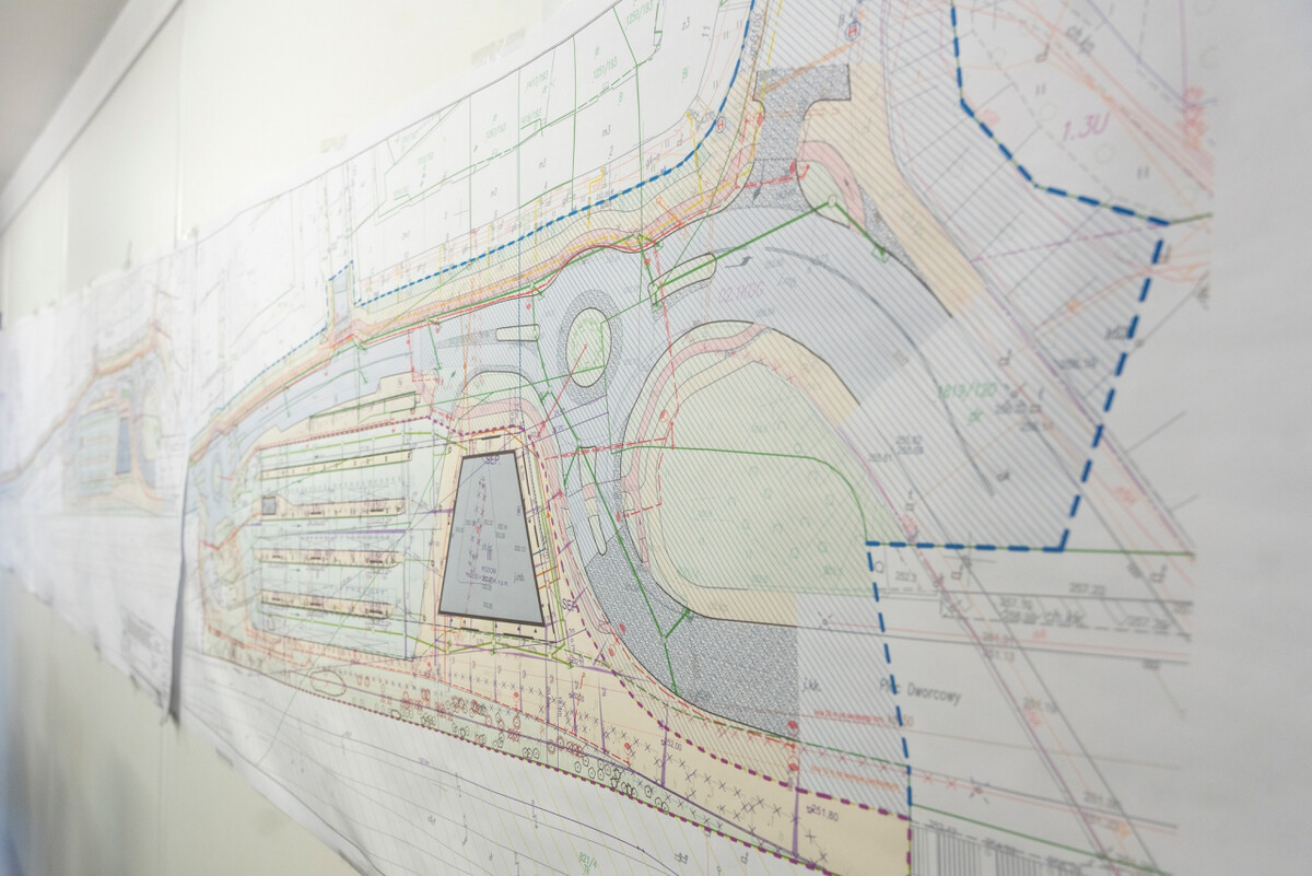 - budowę obiektu centrum przesiadkowego z zadaszeniem wraz z garażem otwartym wielopoziomowym oraz zagospodarowaniem terenu, obejmująca drogowy układu komunikacyjny, skomunikowany z pl. Dworcowym i ul. J. Goethego oraz parkingi i miejsca postojowe wraz z niezbędną infrastrukturą techniczną, oraz wyposażeniem,