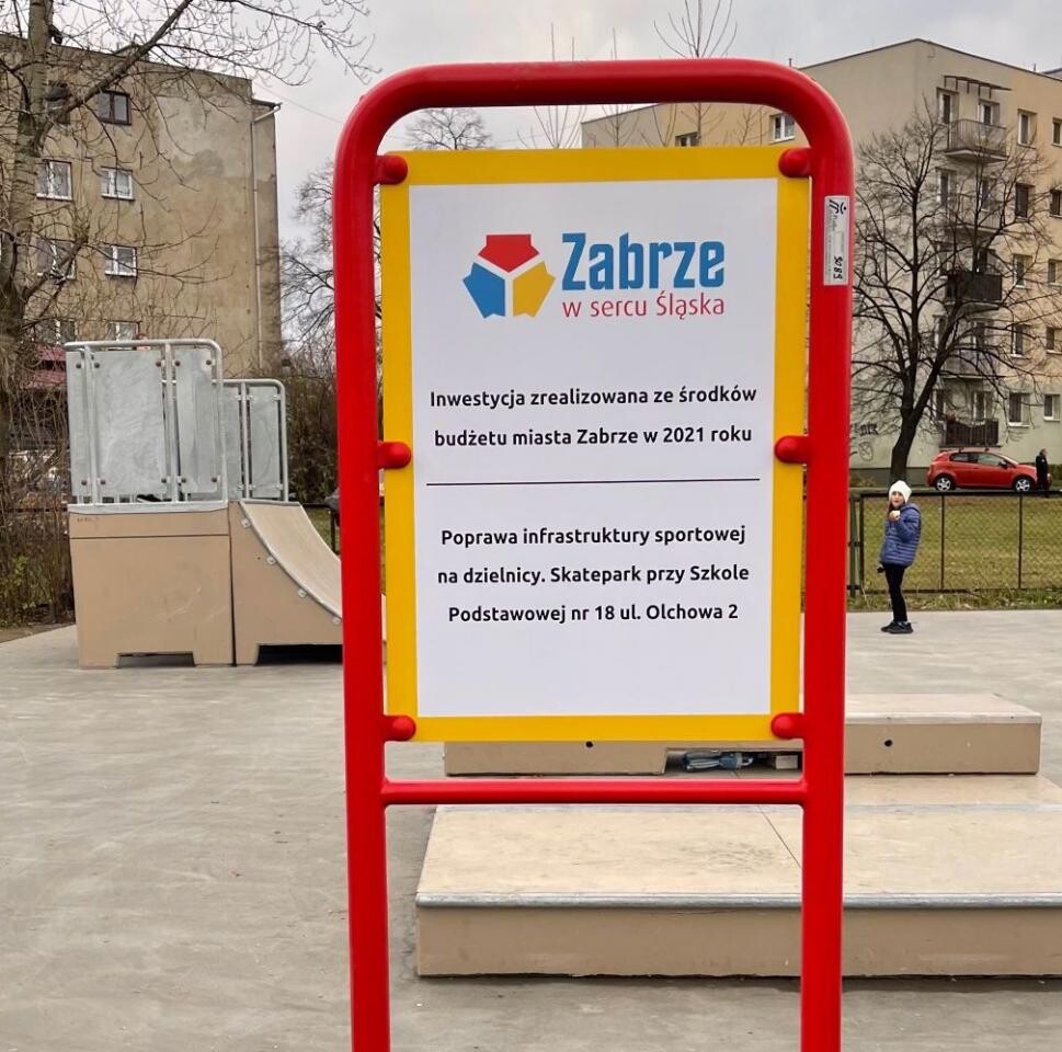 Na terenie zmodernizowanej Szkoły Podstawowej nr 18 im. Powstańców Śląskich przy ul. Olchowej w Zabrzu Zaborzu do użytku oddano dwie inwestycje dedykowane młodzieży – skatepark oraz siłownia pod chmurką z flowparkiem.