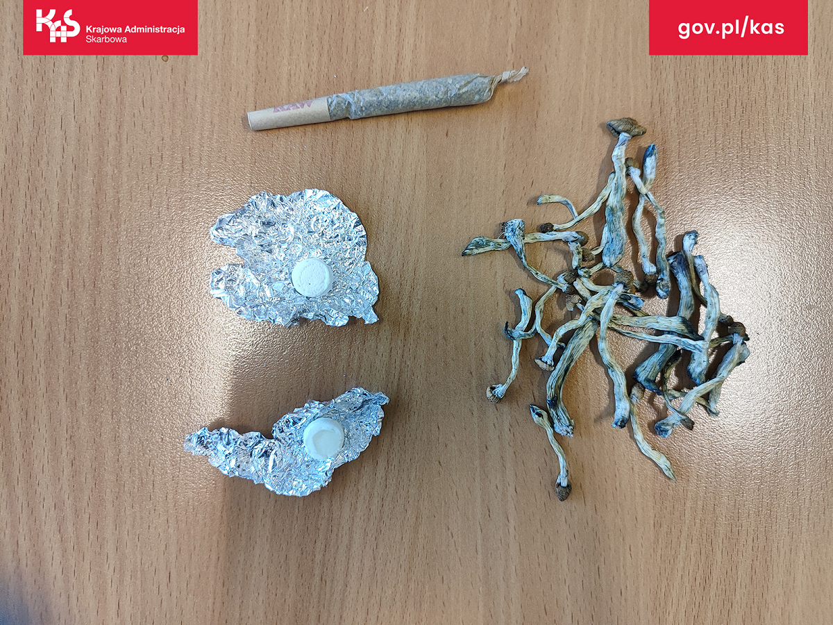 Wewnątrz znajdowały się różnego rodzaju środki odurzające, takie jak grzybki oraz susz roślinny zawinięty w bibułkę, tzw. joint. Badania laboratoryjne wykazały w suszonych grzybkach obecność psylocyny – substancji psychotropowej, a w suszu roślinnym obecność substancji THC. Biorąc pod uwagę masę tego jointa może ona stanowić maksymalnie 2 działki/porcje handlowe. Natomiast uwzględniając stężenie THC, wystarczającą do odurzenia się 23 osób.