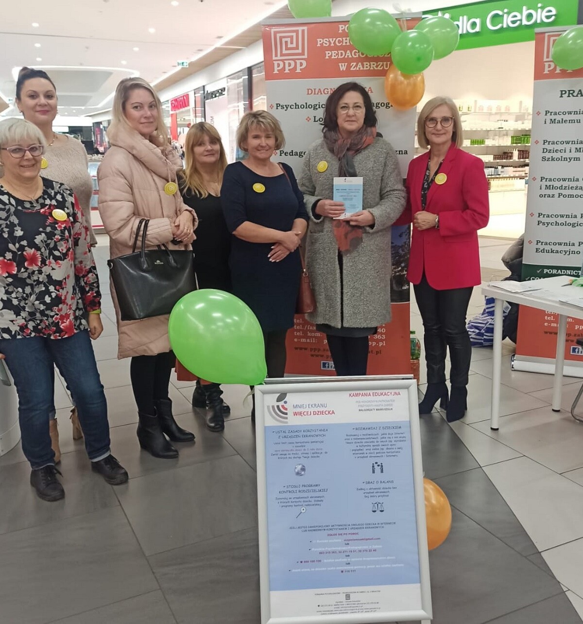Poradnia Psychologiczno-Pedagogiczna w Zabrzu zorganizowała happening w ramach kampanii „Mniej ekranu – więcej dziecka”, mający na cele zwrócenie uwagi na bezpieczne korzystanie przez dzieci i młodzież z urządzeń ekranowych.