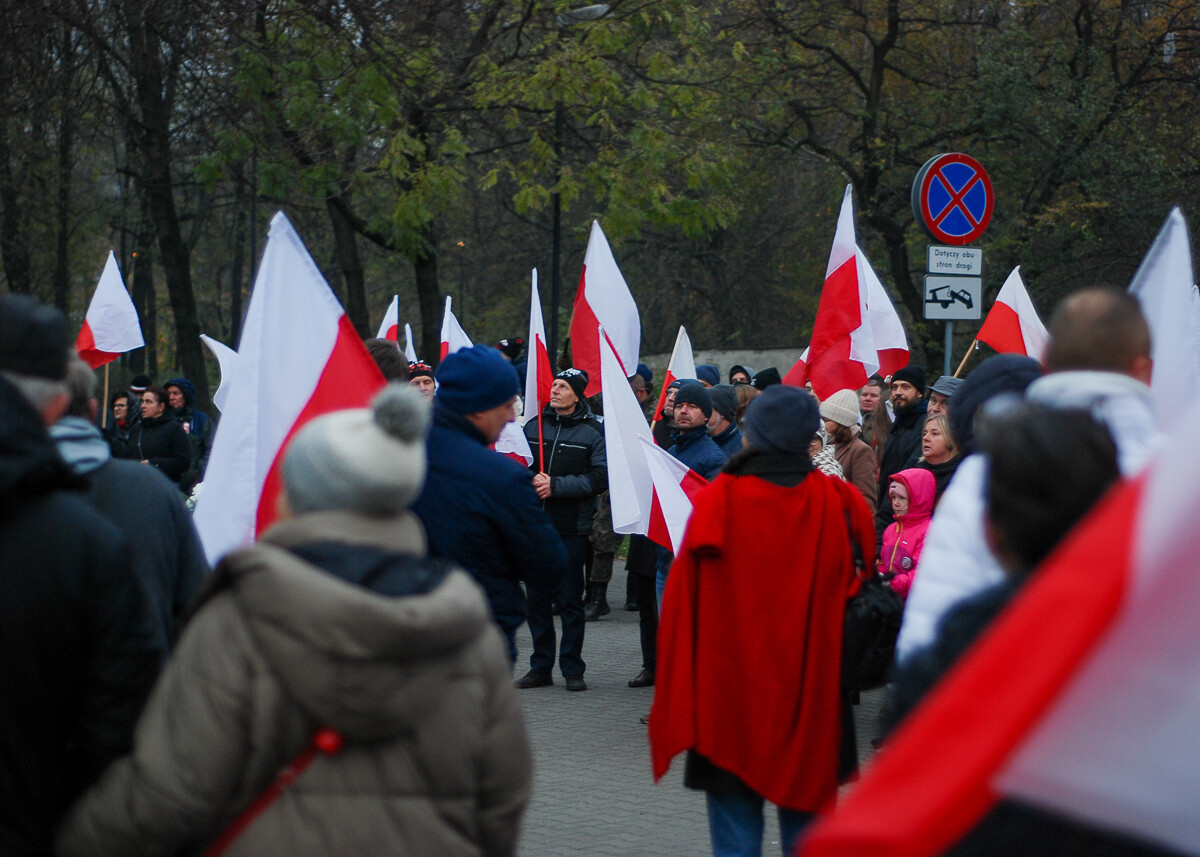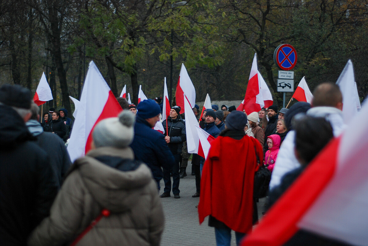 Na miejsce dotarliśmy około godziny 15.30, gdy ostatnie z przemówień dobiegało końca. Marsz przebiegał w spokojnej atmosferze i względnej ciszy, choć wzniesiono kilka okrzyków, zarówno patriotycznych, np. “Cześć i chwała bohaterom”, jak i tych mniej pasujących do powagi chwili, w stylu: “Polak w Polsce gospodarzem”, “Precz z komuną” czy “rząd na bruk, bruk na rząd”. Większą część z nich wykrzyczano na szczęście tylko raz, chyba ktoś zorientował się, że to jednak nie miejsce na polityczną agitkę, skoro wydarzeniu przyświecał cel świętowania “ponad podziałami”.