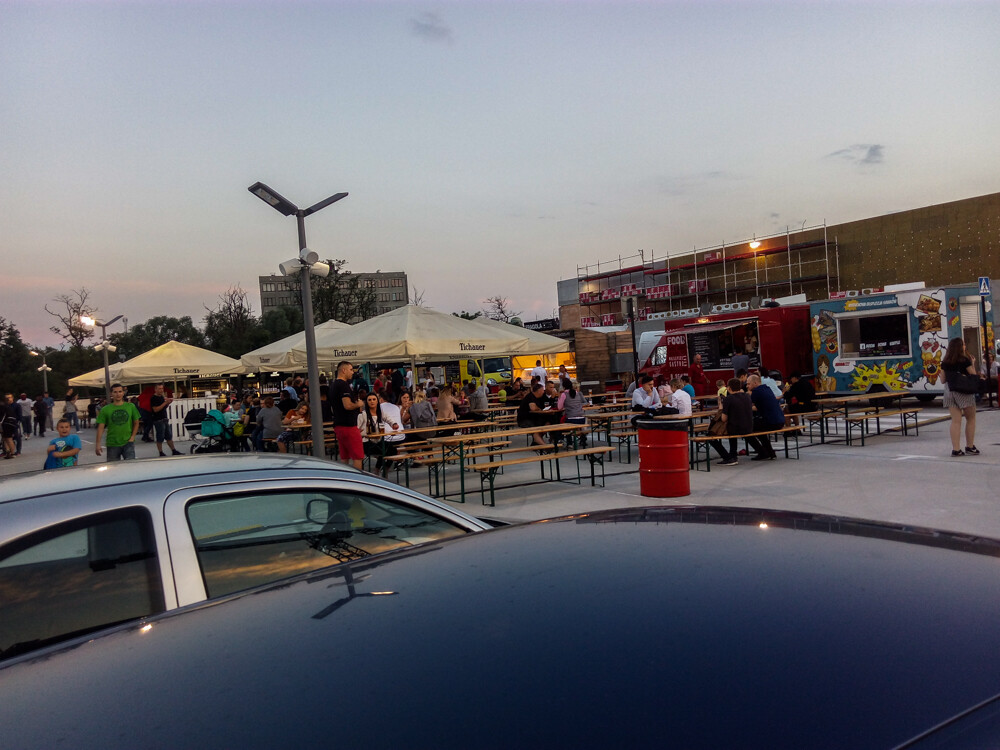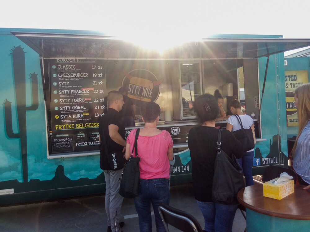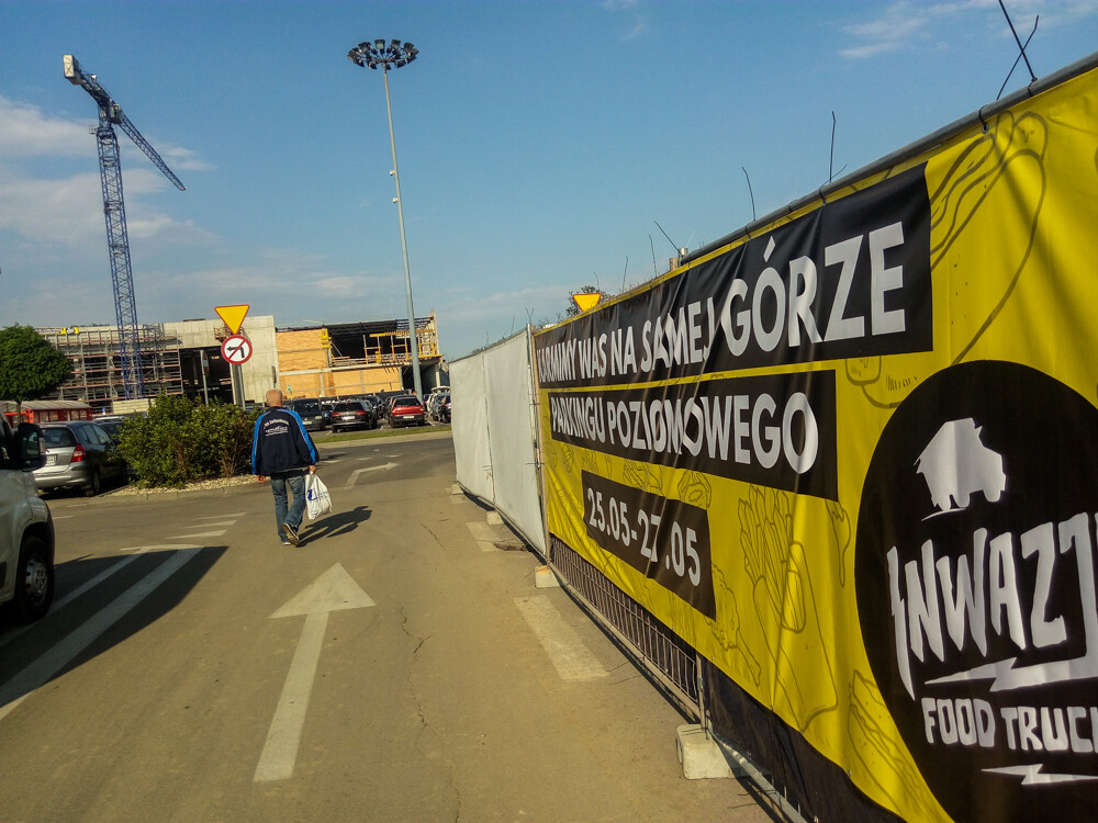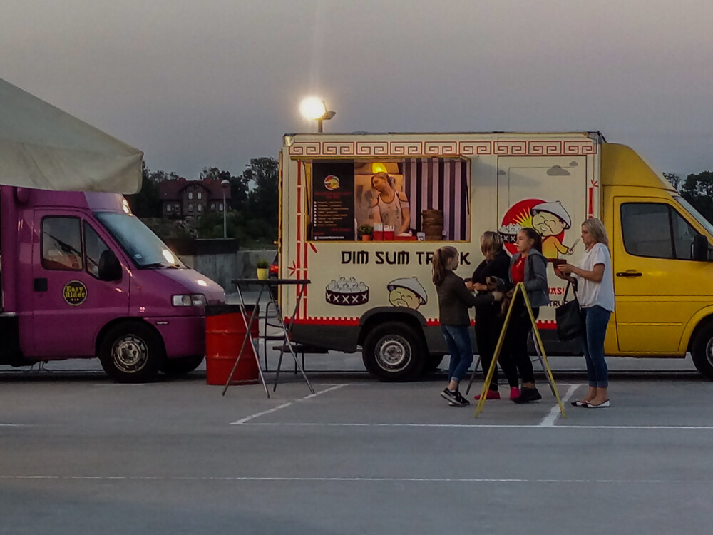 Około 15 pojazdów zaparkowało na trenie centrum handlowego. Choć całość jest jeszcze w dużej mierze placem budowy, sam obiekt działa i daje coraz więcej możliwości. Oprócz smacznych kąsków, serwowano wczoraj także kino plenerowe.