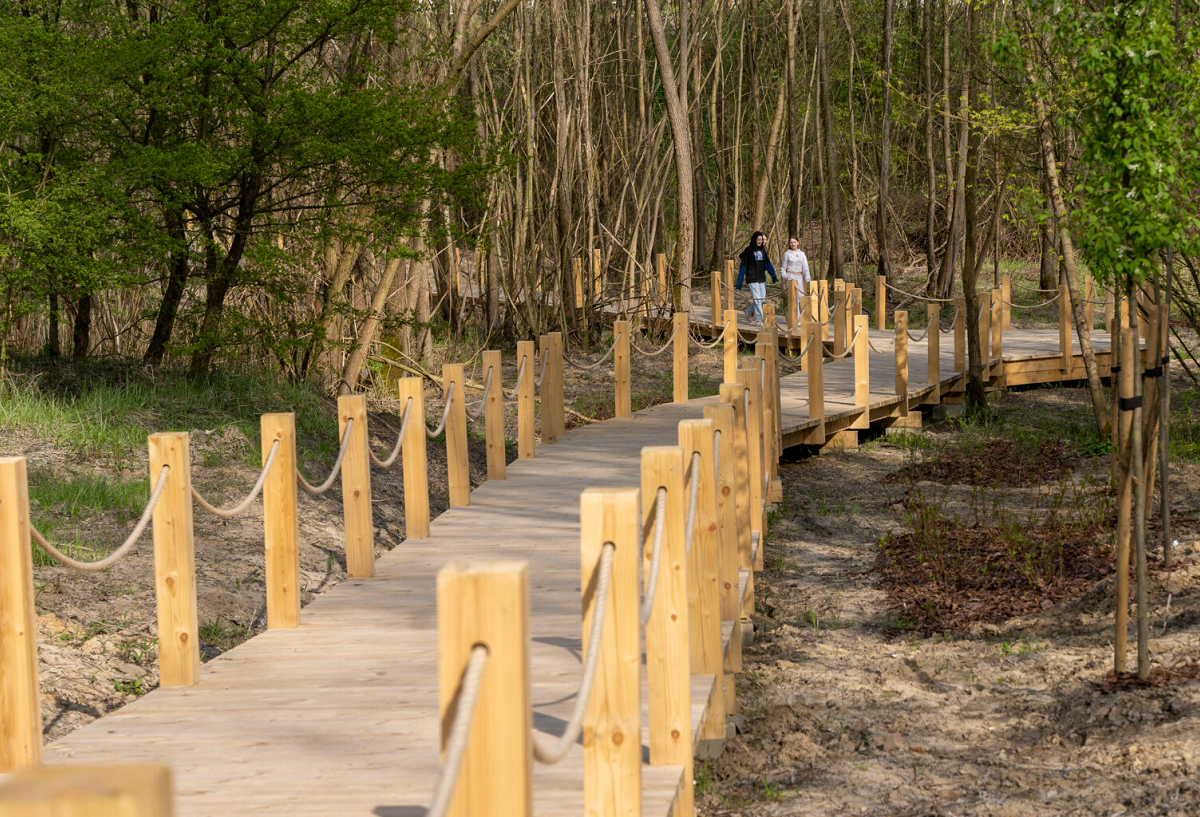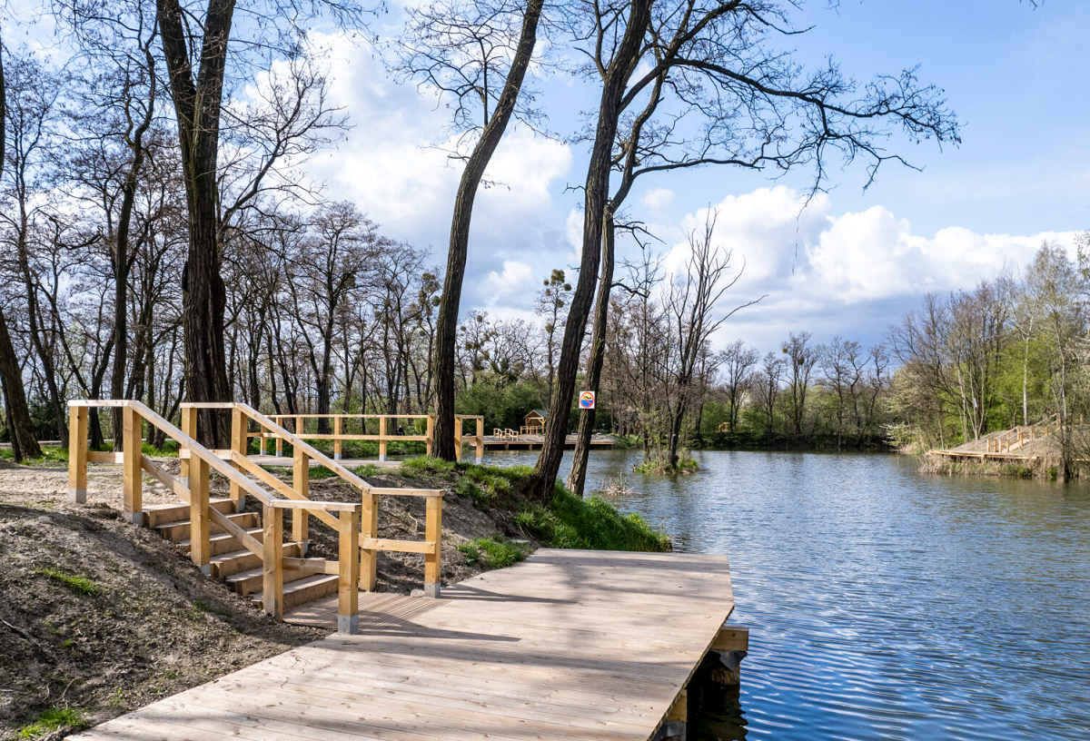 W południowej części terenu powstała infrastruktura na potrzeby rekreacyjne. Zamontowana została mała architektura (ławki, wiaty rekreacyjne). Istniejące zbiorniki wodne już zostały oczyszczone, a tuż przy nich powstały drewniane pomosty. Nie zabraknie także plaży trawiastej, na której do dyspozycji będą leżaki.