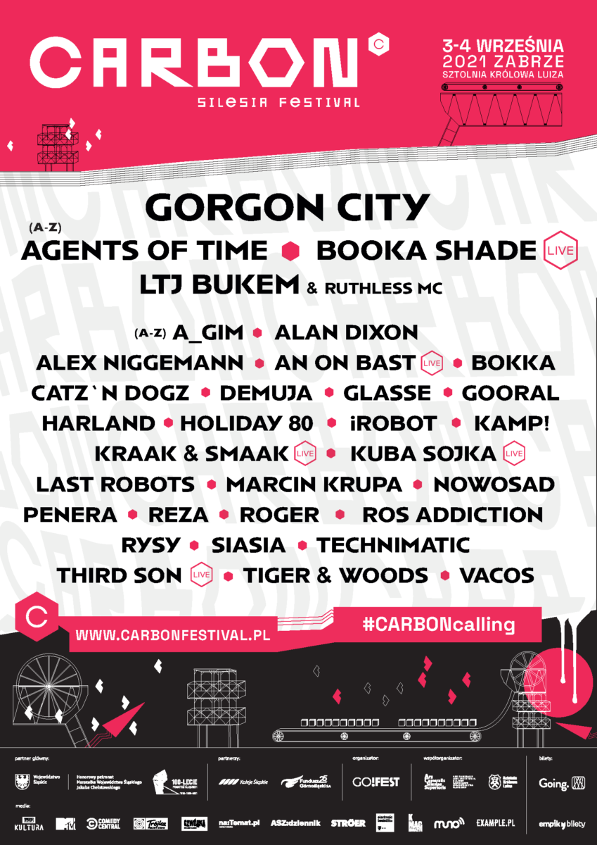 Na CARBON Silesia Festival pojawią się zarówno najciekawsi twórcy muzyki elektronicznej z całego świata, jak i polskiej sceny klubowej. Zagrają m.in.: Gorgon City, Booka Shade Live, Tiger & Woods, Kamp!, Rysy, Technimatic, Gooral, Catz’n Dogz czy BOKKA.