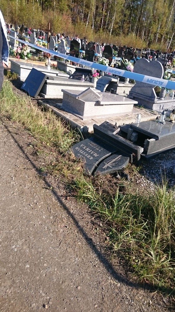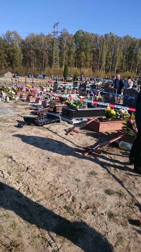 Do dewastacji doszło nocą z soboty na niedzielę. Bytomski dyżurny, w niedzielę rano, otrzymał informacje od gospodarza cmentarza, że doszło do dewastacji grobów. Na miejsce pojechał policyjny patrol. Okazało się, że zniszczonych zostało ok. 30 płyt nagrobnych. Policyjny technik i śledczy zabezpieczyli ślady.