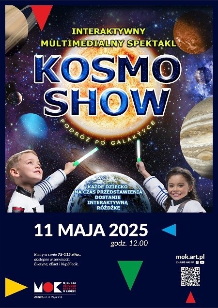 Już 11 maja 2025 roku o godzinie 12:00 Miejski Ośrodek Kultury w Zabrzu (ul. 3 Maja 91a) zaprasza najmłodszych widzów na wyjątkowe wydarzenie – „Kosmo Show”, interaktywny multimedialny spektakl, który zabierze dzieci w niesamowitą podróż po kosmosie.