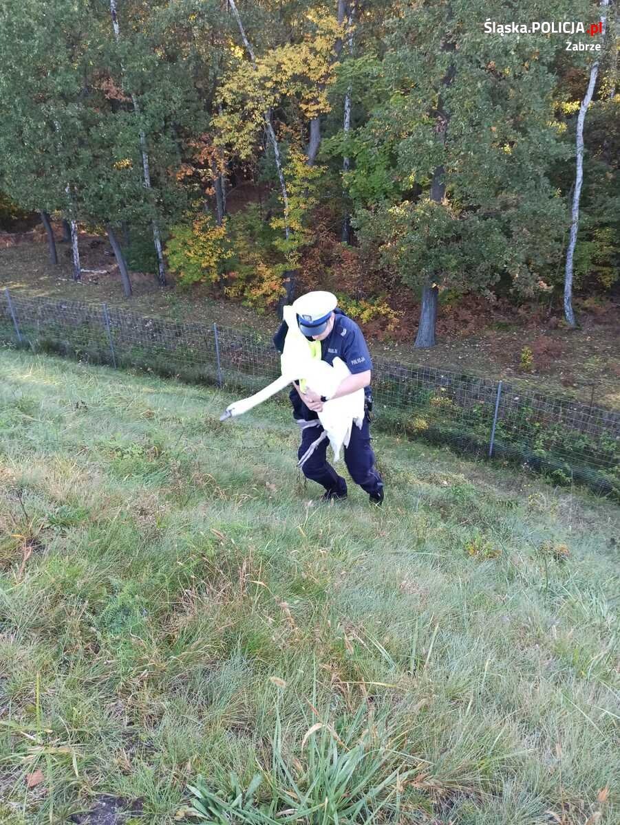 Do nietypowej interwencji doszło wczoraj na Drogowej Trasie Średnicowej. Jeden z kierowców jadąc w stronę Katowic, zauważył chodzącego po drodze, wystraszonego łabędzia. Zwierzę nie potrafiło samodzielnie opuścić drogi i stanowiło zagrożenie dla innych kierujących. Z pomocą łabędziowi ruszyli policjanci.